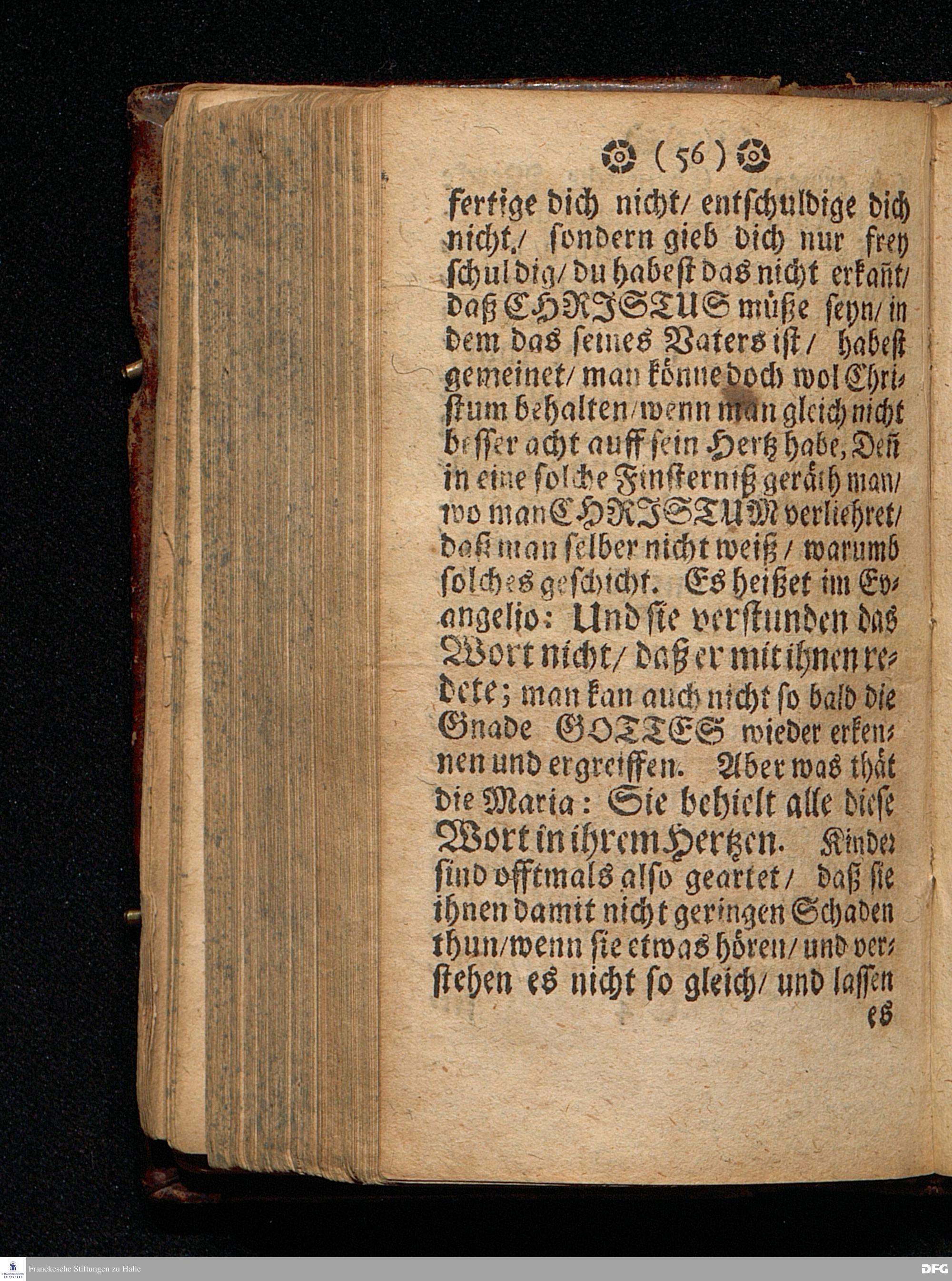Das Schmertzhaffte Suchen unsers Herrn JEsu / Am I.Sonntag Epiphan. Anno 1697. In einer Predigt Uber das Evangelium Luc.II.V, 41--52 In der St.Georgen=Kirche zu Glaucha an Halle vorgestellet / von M.August Hermann Francken / SS.Theol.P.Ord.& P.Glauch. HALLE / Gedruckt bey Christian Henckeln / Univers.Buchdr.1700.