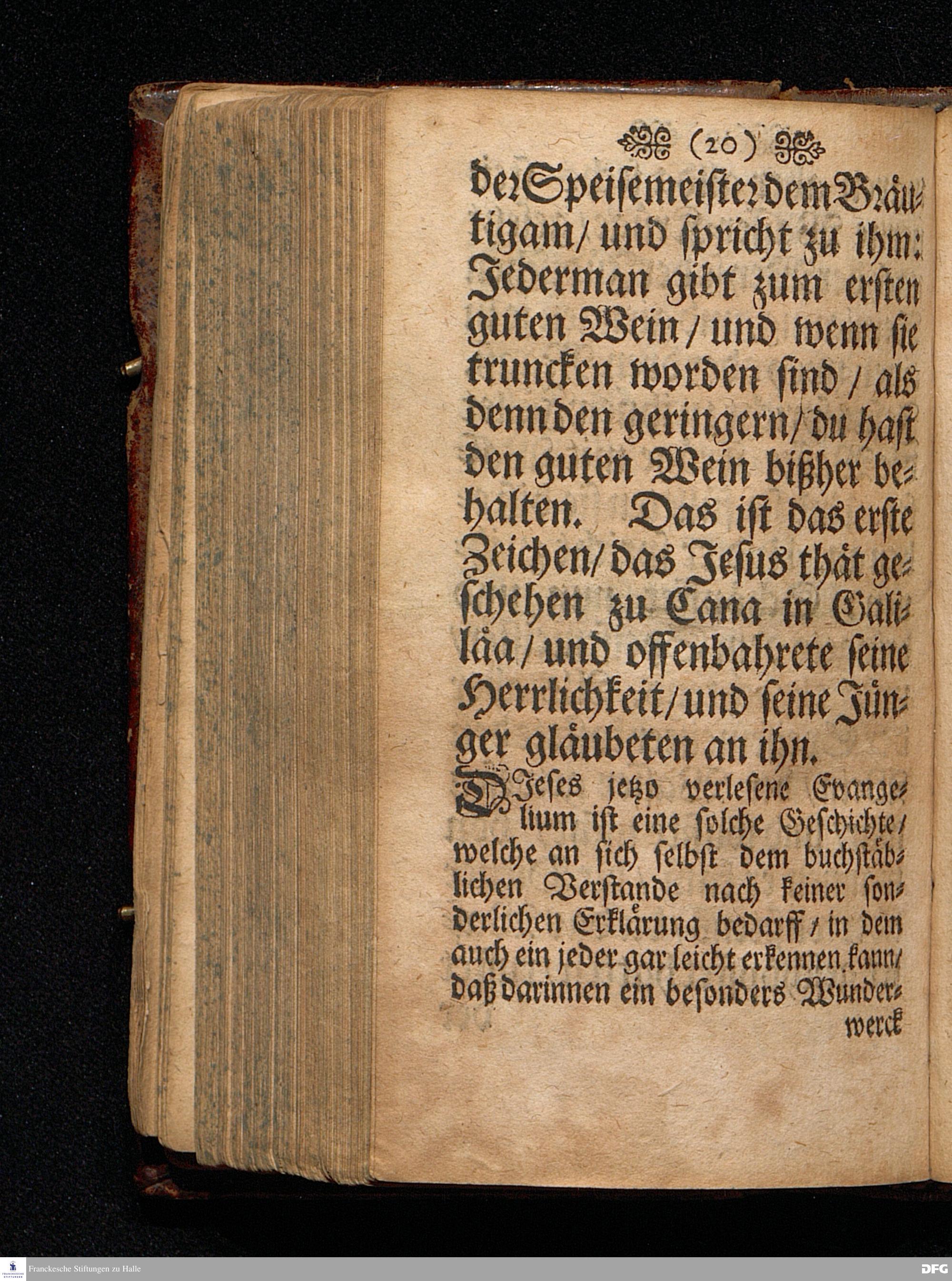 Quedlinburgisches Zeugniß / Oder Predigt Von der Offenbahrung der Herrlichkeit Christi / Uber das Evangelium Joh.II. V.1-11. Am II.Sonnt.nach Epiphan. In der Quedlinburgischen Schloß=Kirchen bey zufälliger Gelegenheit / auff geschehene Ansuchung abgeleget / Und in etwas erweitert zum dritten mal in Druck gegeben Von M. Aug. Hermañ Francken / SS.Theol.P.Ord.& P.Glauch. HALLE / Gedruckt bey Johann Grunerten / 1701.