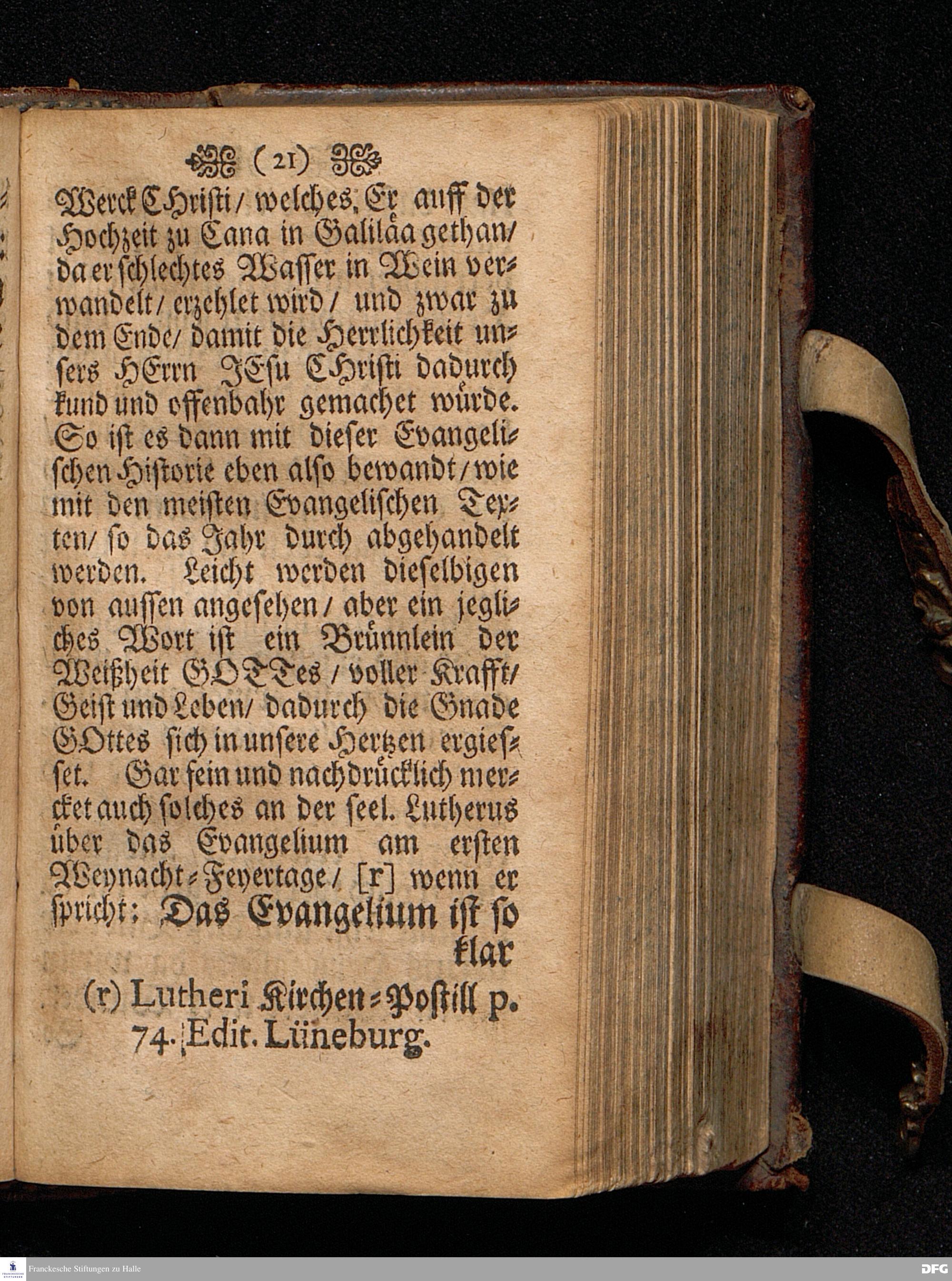 Quedlinburgisches Zeugniß / Oder Predigt Von der Offenbahrung der Herrlichkeit Christi / Uber das Evangelium Joh.II. V.1-11. Am II.Sonnt.nach Epiphan. In der Quedlinburgischen Schloß=Kirchen bey zufälliger Gelegenheit / auff geschehene Ansuchung abgeleget / Und in etwas erweitert zum dritten mal in Druck gegeben Von M. Aug. Hermañ Francken / SS.Theol.P.Ord.& P.Glauch. HALLE / Gedruckt bey Johann Grunerten / 1701.