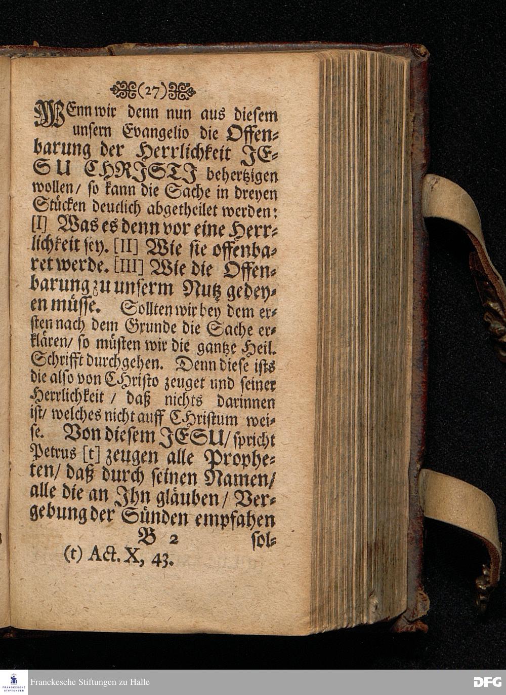 Quedlinburgisches Zeugniß / Oder Predigt Von der Offenbahrung der Herrlichkeit Christi / Uber das Evangelium Joh.II. V.1-11. Am II.Sonnt.nach Epiphan. In der Quedlinburgischen Schloß=Kirchen bey zufälliger Gelegenheit / auff geschehene Ansuchung abgeleget / Und in etwas erweitert zum dritten mal in Druck gegeben Von M. Aug. Hermañ Francken / SS.Theol.P.Ord.& P.Glauch. HALLE / Gedruckt bey Johann Grunerten / 1701.