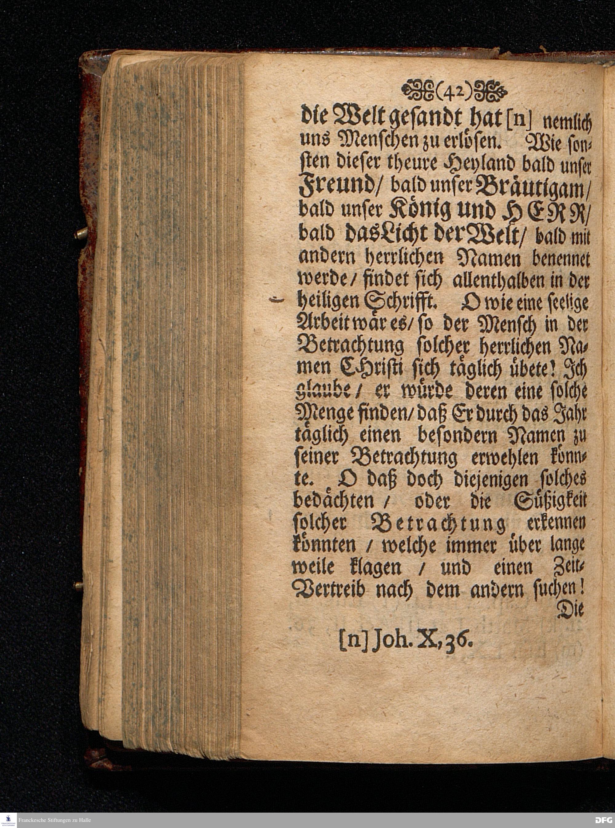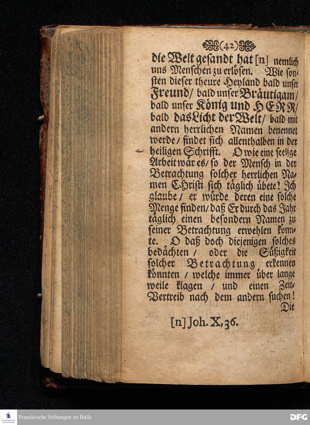 Quedlinburgisches Zeugniß / Oder Predigt Von der Offenbahrung der Herrlichkeit Christi / Uber das Evangelium Joh.II. V.1-11. Am II.Sonnt.nach Epiphan. In der Quedlinburgischen Schloß=Kirchen bey zufälliger Gelegenheit / auff geschehene Ansuchung abgeleget / Und in etwas erweitert zum dritten mal in Druck gegeben Von M. Aug. Hermañ Francken / SS.Theol.P.Ord.& P.Glauch. HALLE / Gedruckt bey Johann Grunerten / 1701.