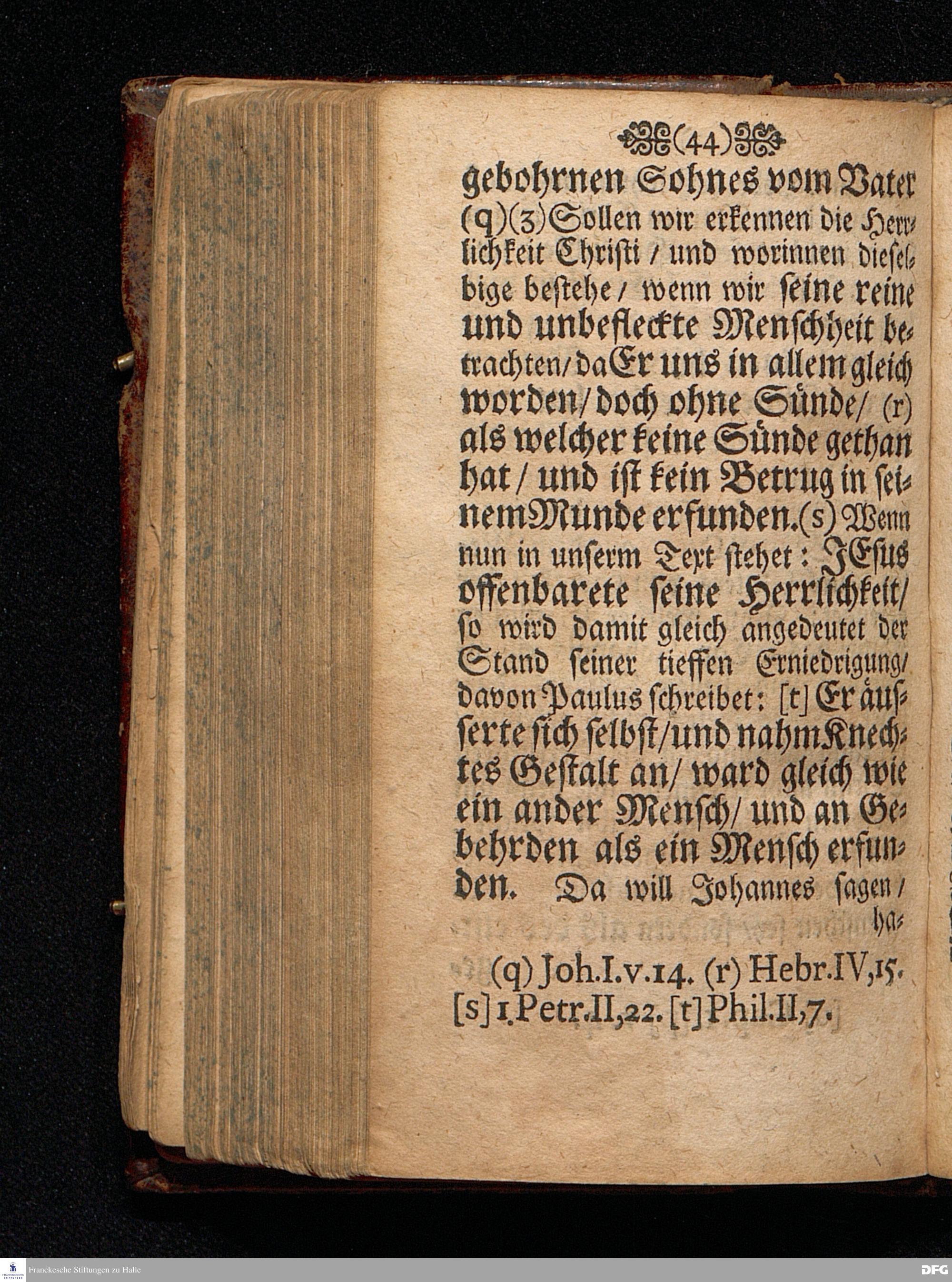 Quedlinburgisches Zeugniß / Oder Predigt Von der Offenbahrung der Herrlichkeit Christi / Uber das Evangelium Joh.II. V.1-11. Am II.Sonnt.nach Epiphan. In der Quedlinburgischen Schloß=Kirchen bey zufälliger Gelegenheit / auff geschehene Ansuchung abgeleget / Und in etwas erweitert zum dritten mal in Druck gegeben Von M. Aug. Hermañ Francken / SS.Theol.P.Ord.& P.Glauch. HALLE / Gedruckt bey Johann Grunerten / 1701.