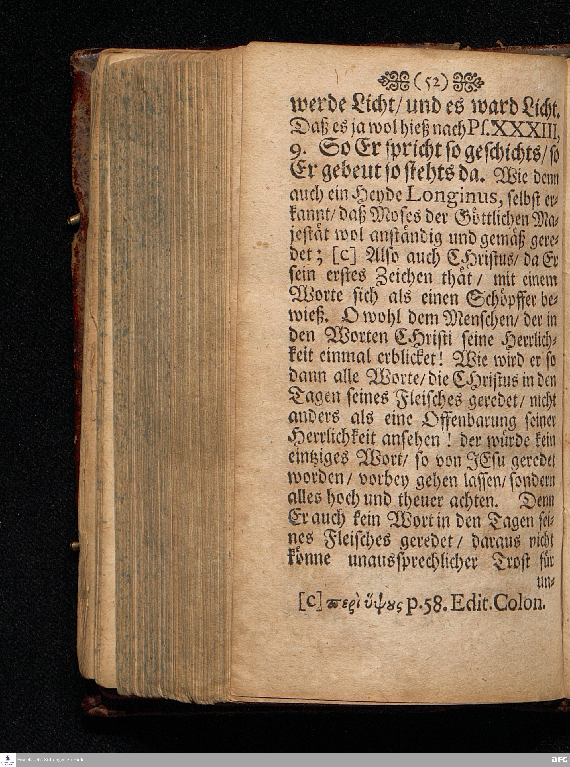 Quedlinburgisches Zeugniß / Oder Predigt Von der Offenbahrung der Herrlichkeit Christi / Uber das Evangelium Joh.II. V.1-11. Am II.Sonnt.nach Epiphan. In der Quedlinburgischen Schloß=Kirchen bey zufälliger Gelegenheit / auff geschehene Ansuchung abgeleget / Und in etwas erweitert zum dritten mal in Druck gegeben Von M. Aug. Hermañ Francken / SS.Theol.P.Ord.& P.Glauch. HALLE / Gedruckt bey Johann Grunerten / 1701.