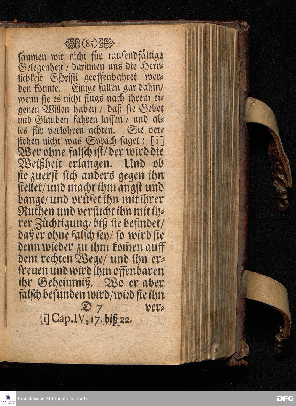 Quedlinburgisches Zeugniß / Oder Predigt Von der Offenbahrung der Herrlichkeit Christi / Uber das Evangelium Joh.II. V.1-11. Am II.Sonnt.nach Epiphan. In der Quedlinburgischen Schloß=Kirchen bey zufälliger Gelegenheit / auff geschehene Ansuchung abgeleget / Und in etwas erweitert zum dritten mal in Druck gegeben Von M. Aug. Hermañ Francken / SS.Theol.P.Ord.& P.Glauch. HALLE / Gedruckt bey Johann Grunerten / 1701.