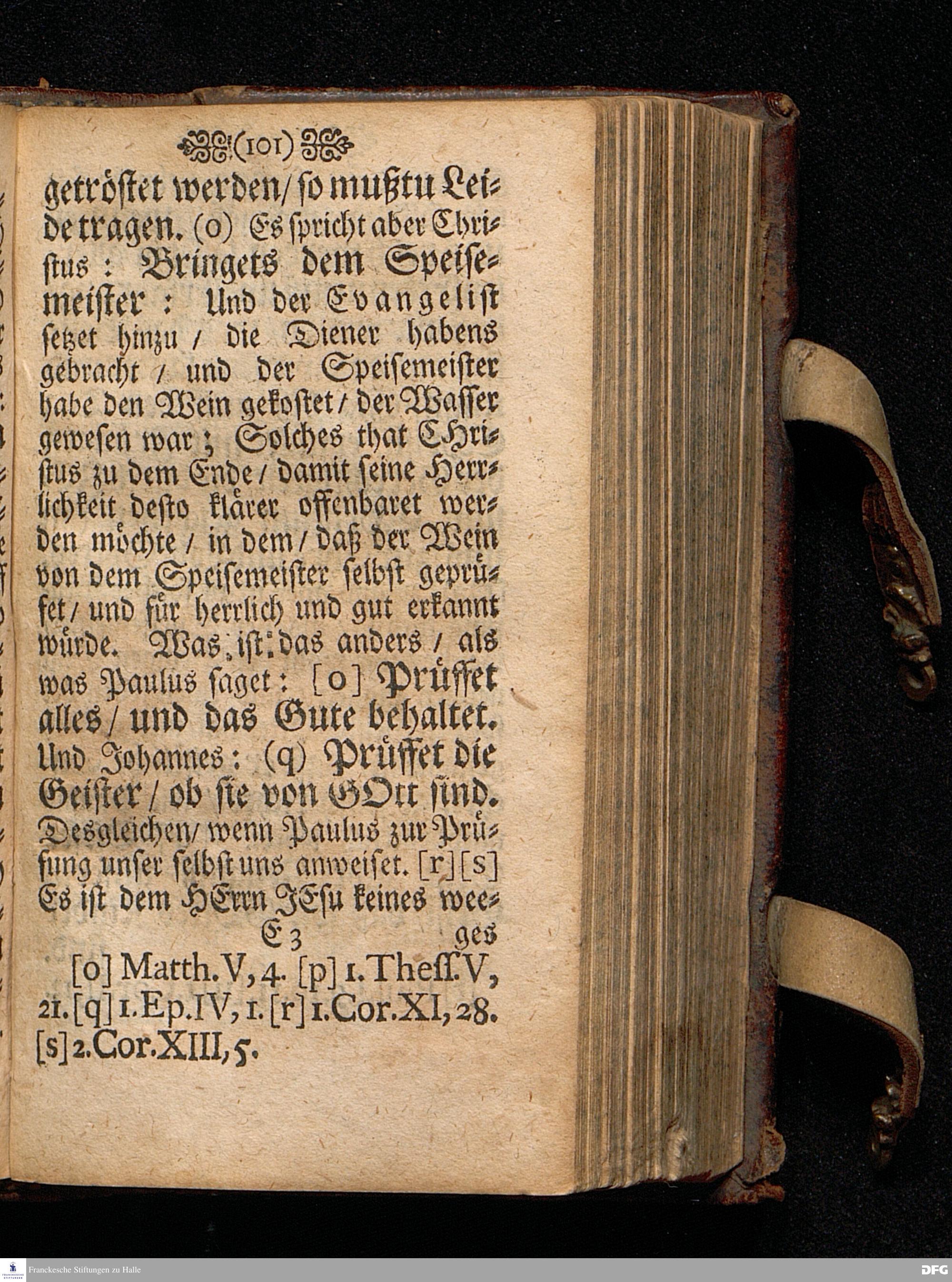 Quedlinburgisches Zeugniß / Oder Predigt Von der Offenbahrung der Herrlichkeit Christi / Uber das Evangelium Joh.II. V.1-11. Am II.Sonnt.nach Epiphan. In der Quedlinburgischen Schloß=Kirchen bey zufälliger Gelegenheit / auff geschehene Ansuchung abgeleget / Und in etwas erweitert zum dritten mal in Druck gegeben Von M. Aug. Hermañ Francken / SS.Theol.P.Ord.& P.Glauch. HALLE / Gedruckt bey Johann Grunerten / 1701.
