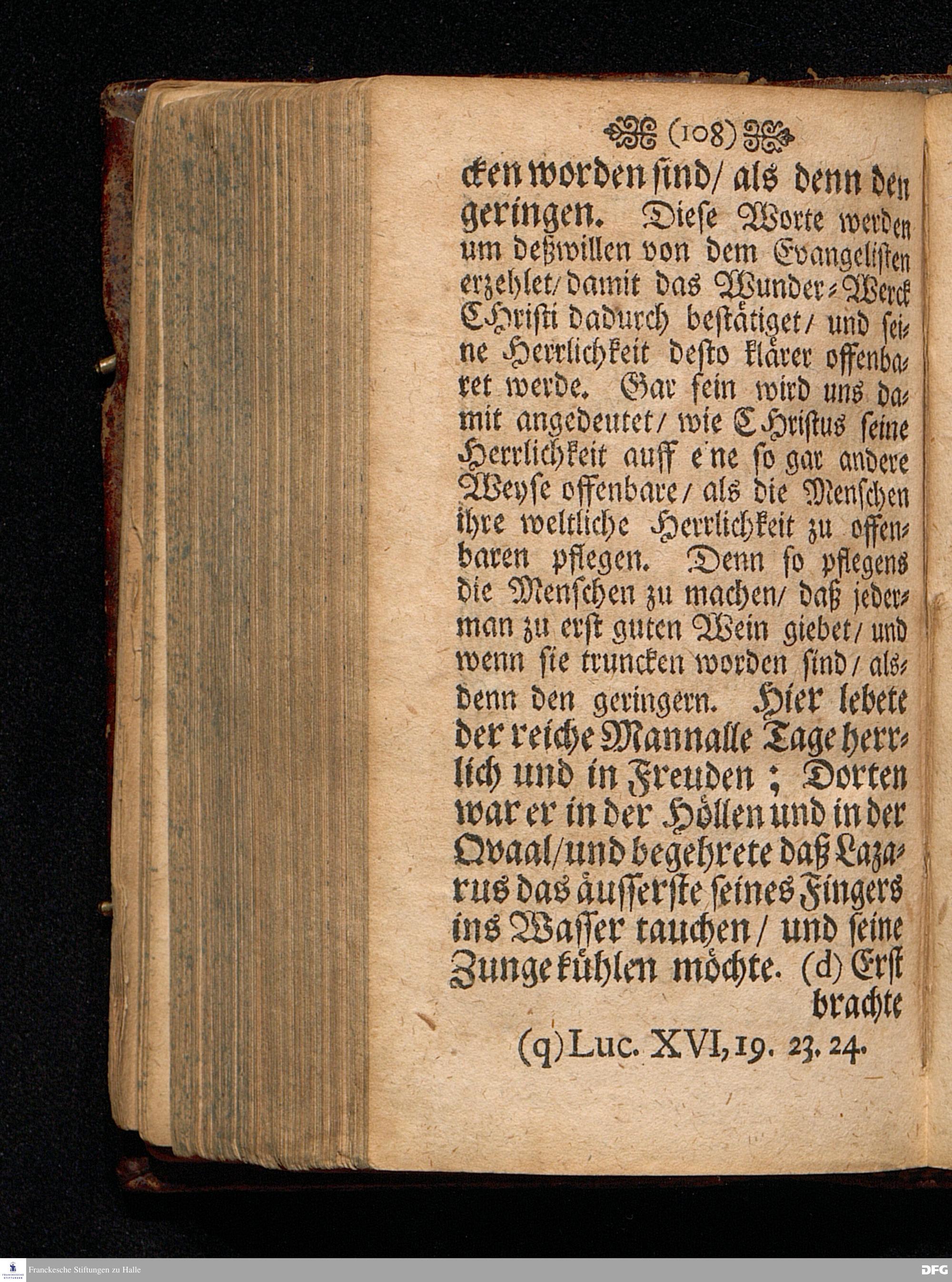 Quedlinburgisches Zeugniß / Oder Predigt Von der Offenbahrung der Herrlichkeit Christi / Uber das Evangelium Joh.II. V.1-11. Am II.Sonnt.nach Epiphan. In der Quedlinburgischen Schloß=Kirchen bey zufälliger Gelegenheit / auff geschehene Ansuchung abgeleget / Und in etwas erweitert zum dritten mal in Druck gegeben Von M. Aug. Hermañ Francken / SS.Theol.P.Ord.& P.Glauch. HALLE / Gedruckt bey Johann Grunerten / 1701.