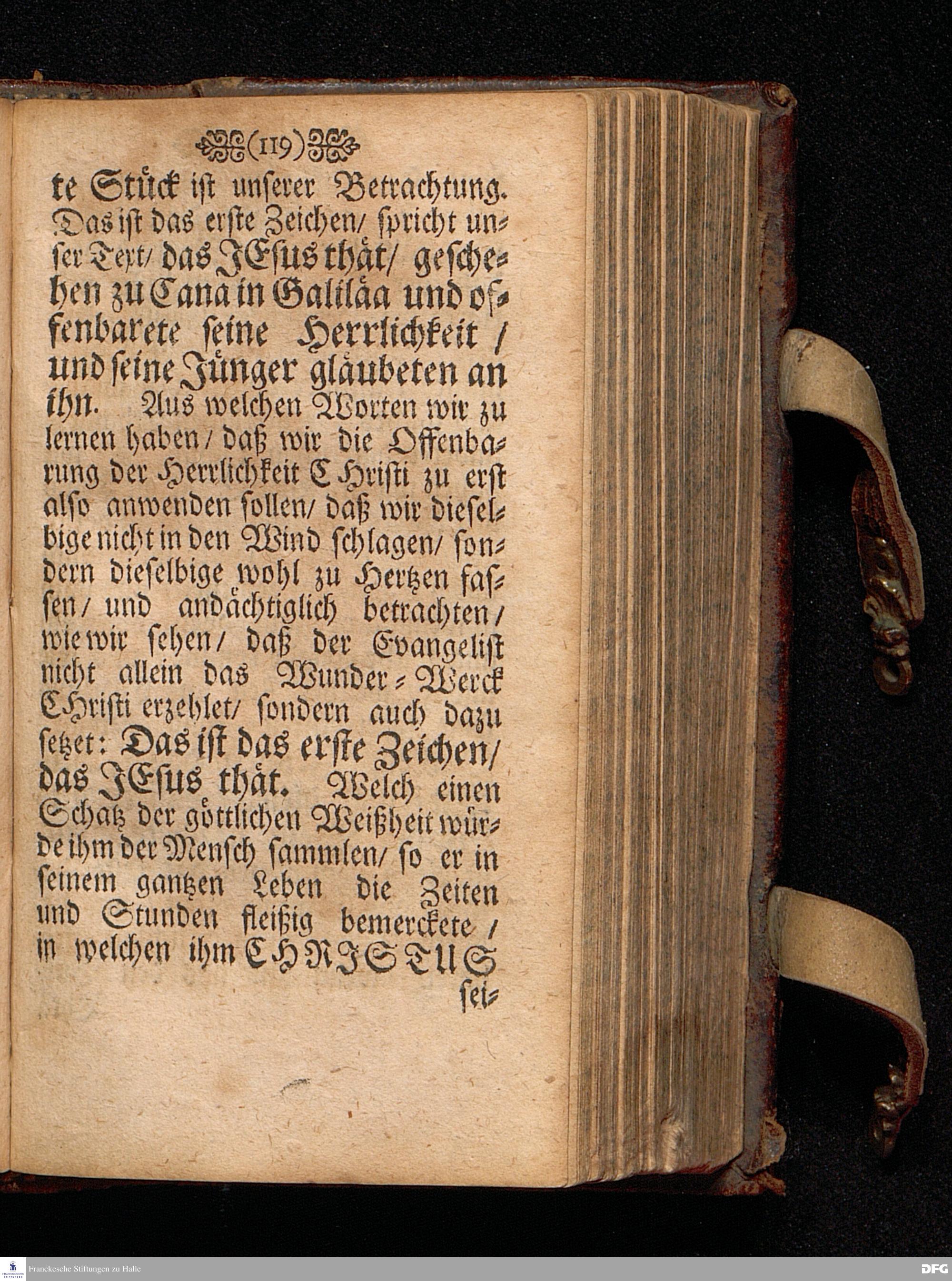 Quedlinburgisches Zeugniß / Oder Predigt Von der Offenbahrung der Herrlichkeit Christi / Uber das Evangelium Joh.II. V.1-11. Am II.Sonnt.nach Epiphan. In der Quedlinburgischen Schloß=Kirchen bey zufälliger Gelegenheit / auff geschehene Ansuchung abgeleget / Und in etwas erweitert zum dritten mal in Druck gegeben Von M. Aug. Hermañ Francken / SS.Theol.P.Ord.& P.Glauch. HALLE / Gedruckt bey Johann Grunerten / 1701.