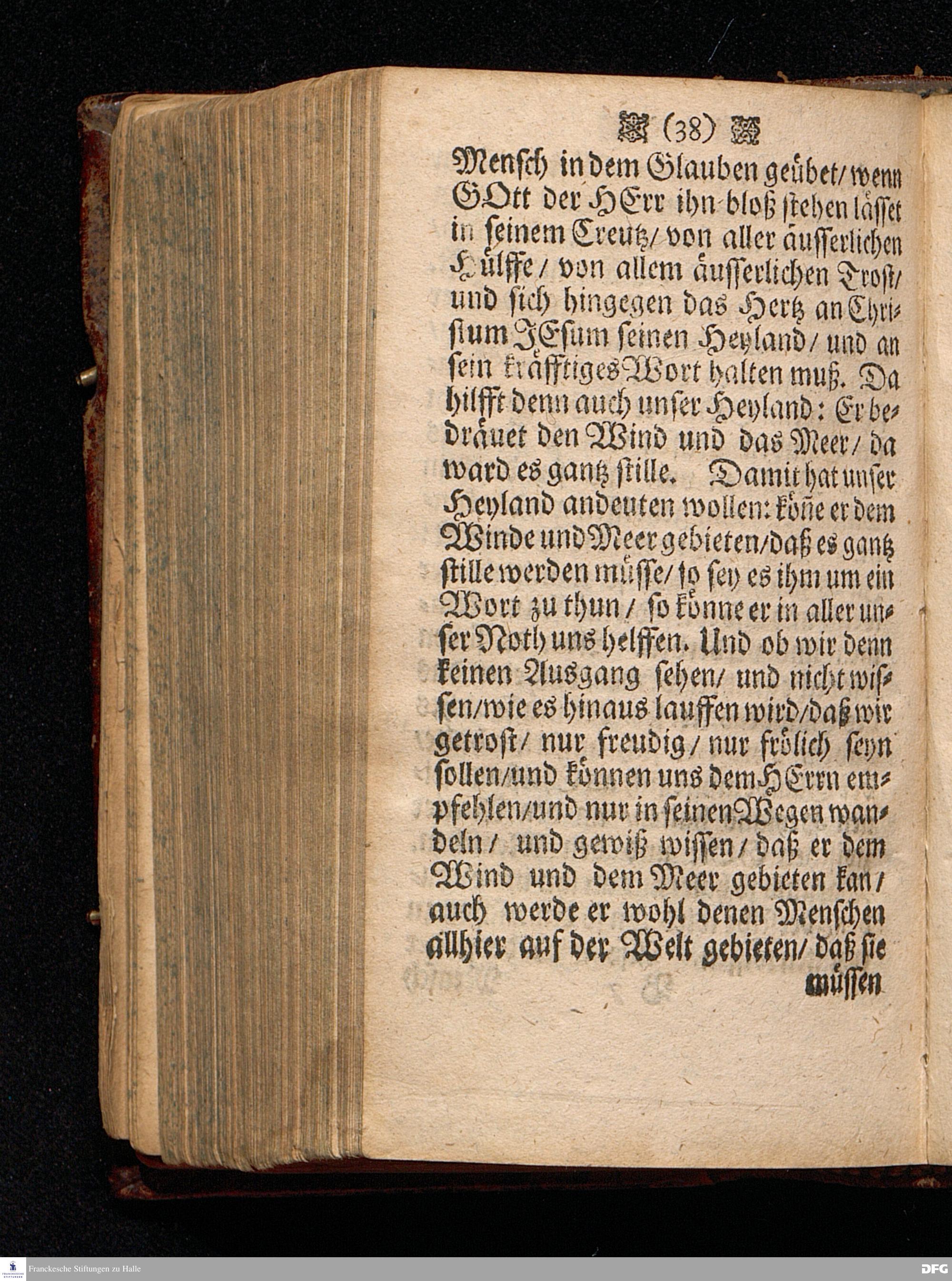Die Ubung des Glaubens im Creutz / oder: wie JEsus die Seinigen im Glauben pflege zu üben / In einer Predigt Uber das Evangelium Matth.VIII. v.23-27. Am IV.Sonntage nach Epiphan. Anno 1700. In der St.Georgen=Kirche zu Glaucha an Halle vorgestellet von M.August Hermann Francken / S.S.Theol.P.Ord.& Past.Glauch. Halle / in Verlegung des Waysenhauses.