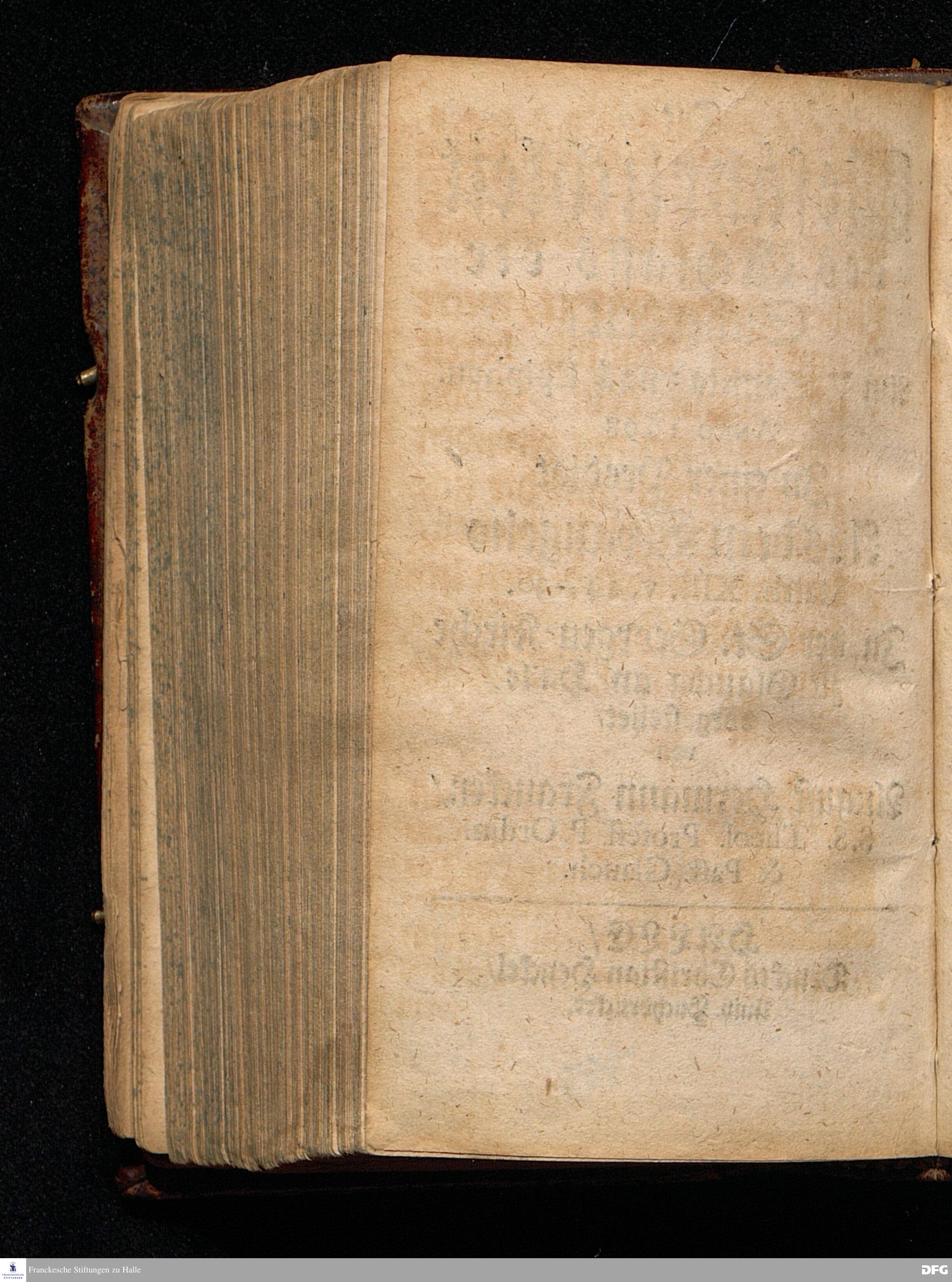Die Gefährlichkeit des Schlaffs der Sicherheit / Am V.Sonntag nach Epiphan. ANNO 1698 In einer Predigt Aus dem Evangelio Matth.XIII. v.24--30. In der St.Georgen=Kirche zu Glaucha an Halle vorgestellet / von August Hermann Francken / S.S.Theol.Profess.P.Ordin.& Past.Glauch. HALLE / Druckts Christian Henckel / Univ.Buchdrucker.
