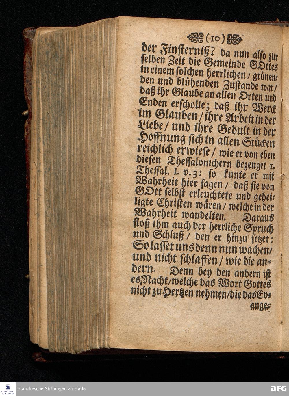 Die Gefährlichkeit des Schlaffs der Sicherheit / Am V.Sonntag nach Epiphan. ANNO 1698 In einer Predigt Aus dem Evangelio Matth.XIII. v.24--30. In der St.Georgen=Kirche zu Glaucha an Halle vorgestellet / von August Hermann Francken / S.S.Theol.Profess.P.Ordin.& Past.Glauch. HALLE / Druckts Christian Henckel / Univ.Buchdrucker.