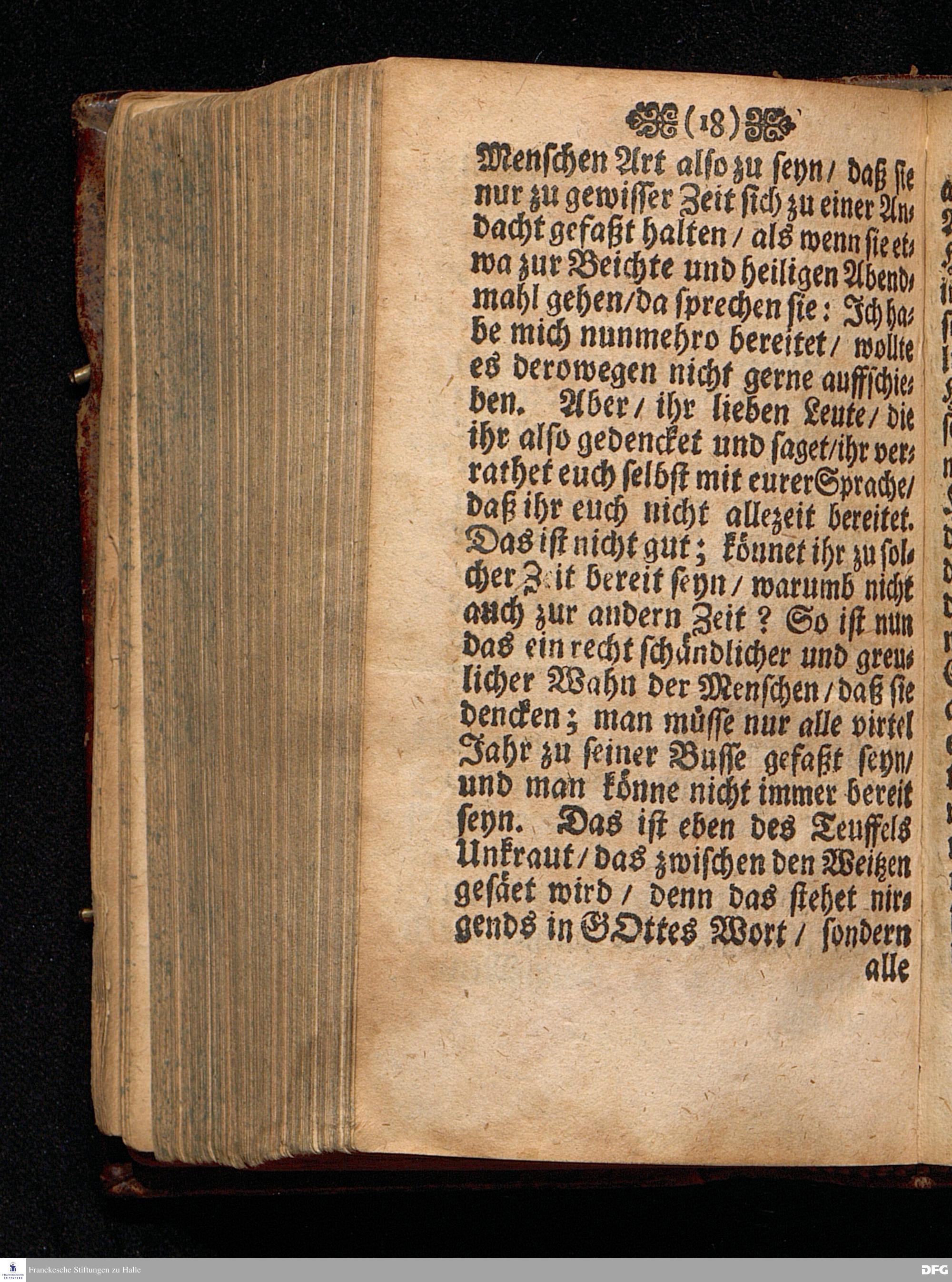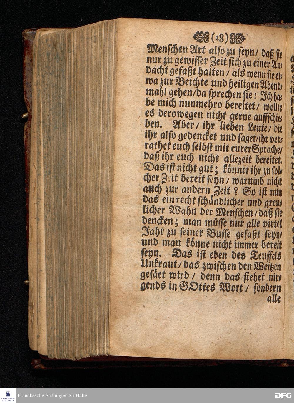 Die Gefährlichkeit des Schlaffs der Sicherheit / Am V.Sonntag nach Epiphan. ANNO 1698 In einer Predigt Aus dem Evangelio Matth.XIII. v.24--30. In der St.Georgen=Kirche zu Glaucha an Halle vorgestellet / von August Hermann Francken / S.S.Theol.Profess.P.Ordin.& Past.Glauch. HALLE / Druckts Christian Henckel / Univ.Buchdrucker.