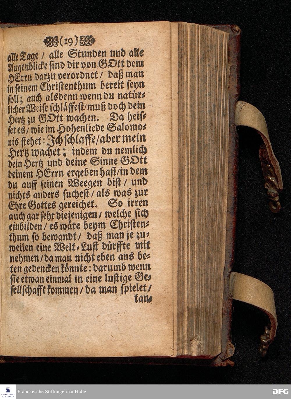 Die Gefährlichkeit des Schlaffs der Sicherheit / Am V.Sonntag nach Epiphan. ANNO 1698 In einer Predigt Aus dem Evangelio Matth.XIII. v.24--30. In der St.Georgen=Kirche zu Glaucha an Halle vorgestellet / von August Hermann Francken / S.S.Theol.Profess.P.Ordin.& Past.Glauch. HALLE / Druckts Christian Henckel / Univ.Buchdrucker.