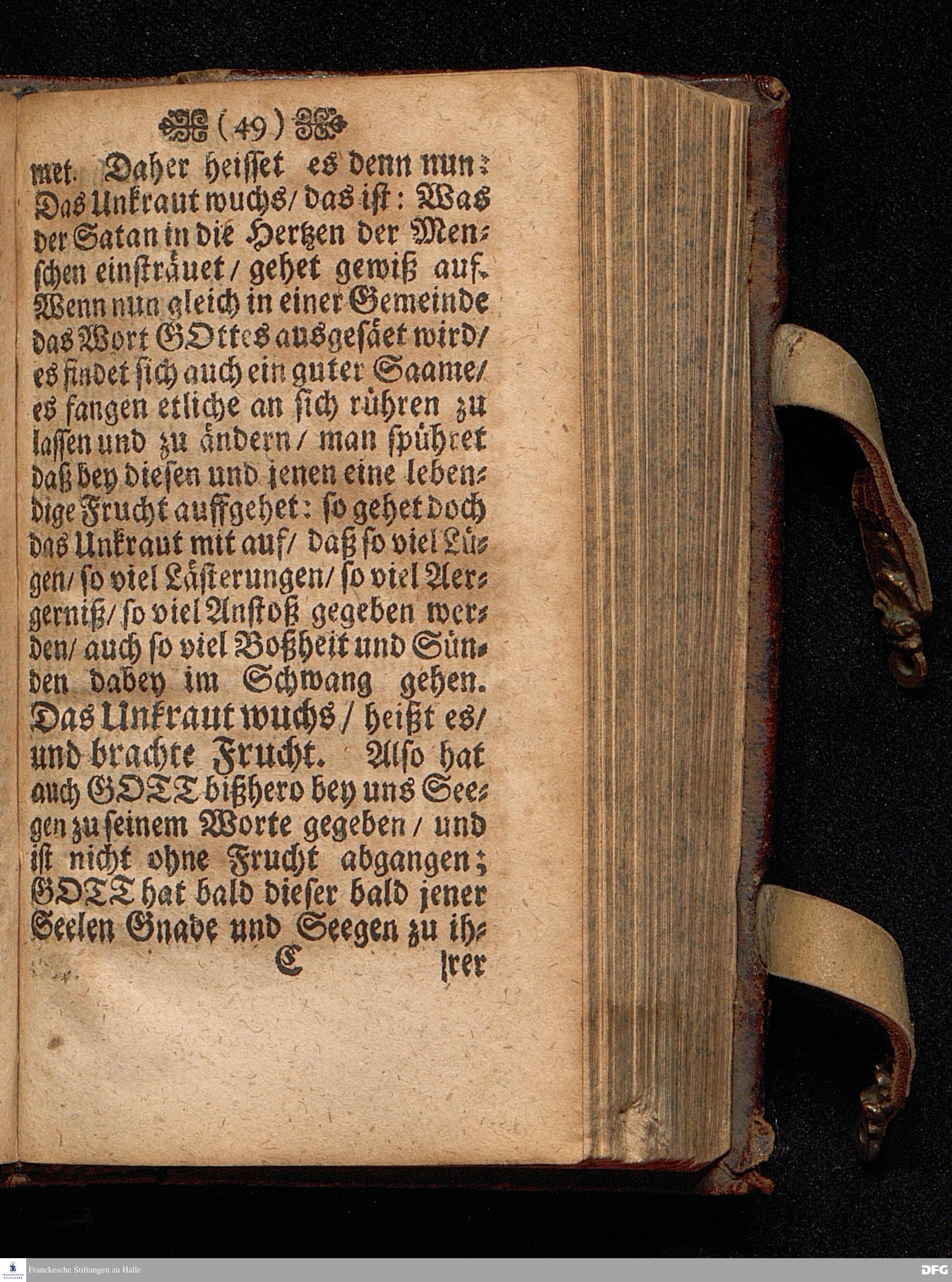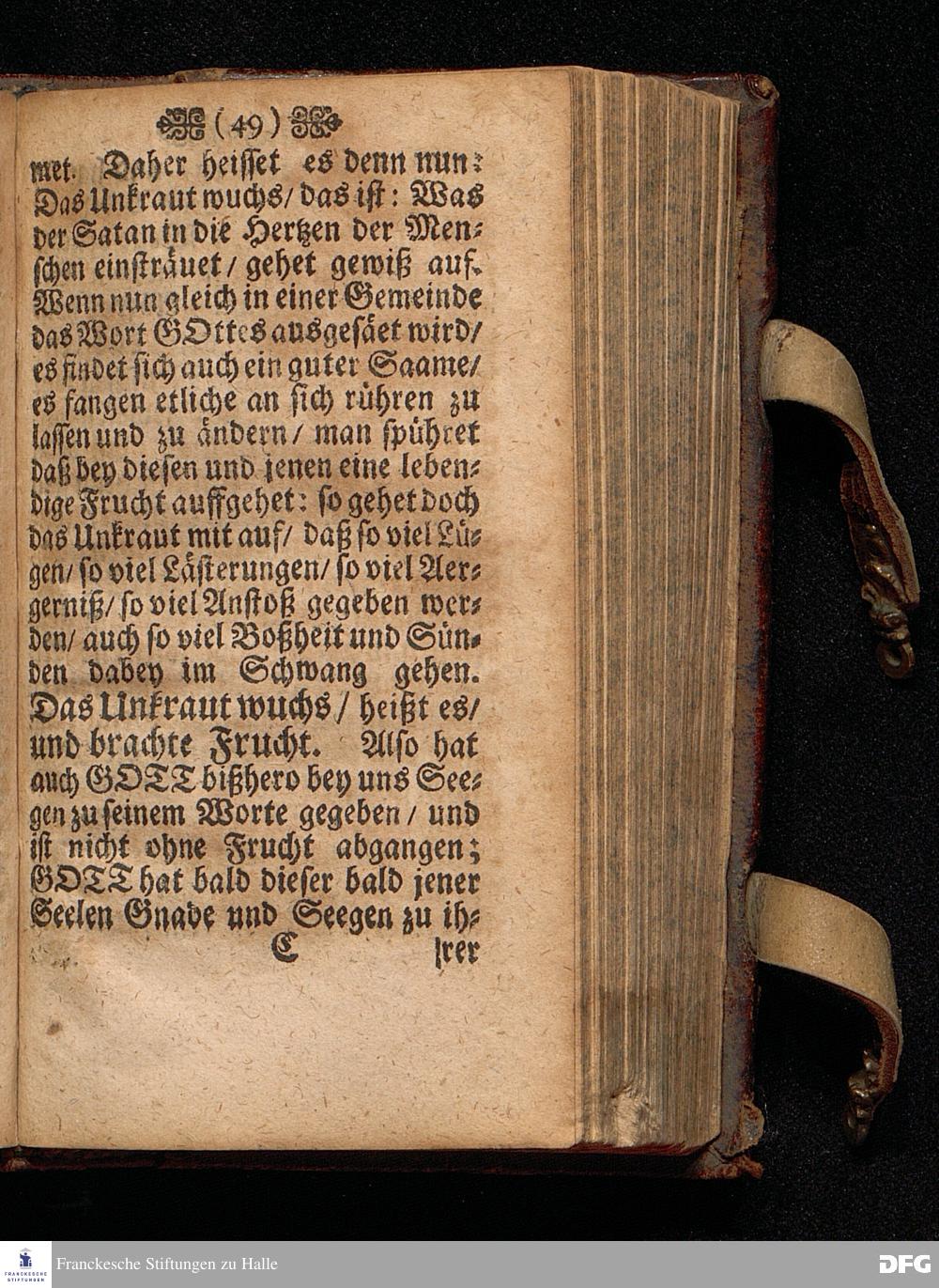 Die Gefährlichkeit des Schlaffs der Sicherheit / Am V.Sonntag nach Epiphan. ANNO 1698 In einer Predigt Aus dem Evangelio Matth.XIII. v.24--30. In der St.Georgen=Kirche zu Glaucha an Halle vorgestellet / von August Hermann Francken / S.S.Theol.Profess.P.Ordin.& Past.Glauch. HALLE / Druckts Christian Henckel / Univ.Buchdrucker.