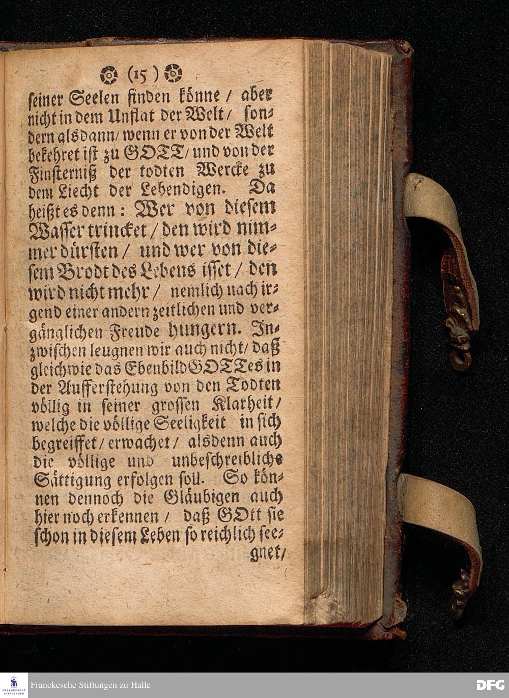 Der Vorschmack des ewigen Lebens / In einer Predigt Uber das Evangelium Matth.XVII, v.1==9. am 6.Sonntag nach Epiphan. Anno 1698. In der St.Georgen=Kirche zu Glaucha an Halle vorgestellet Und nunmehro zum andern mal herausgegeben / von M.August Hermann Francken / SS.Theol.Gr.& OO.LL.P.P.Ord.& P.Glauch. HALLE / Druckts Christian Henckel / 1699.