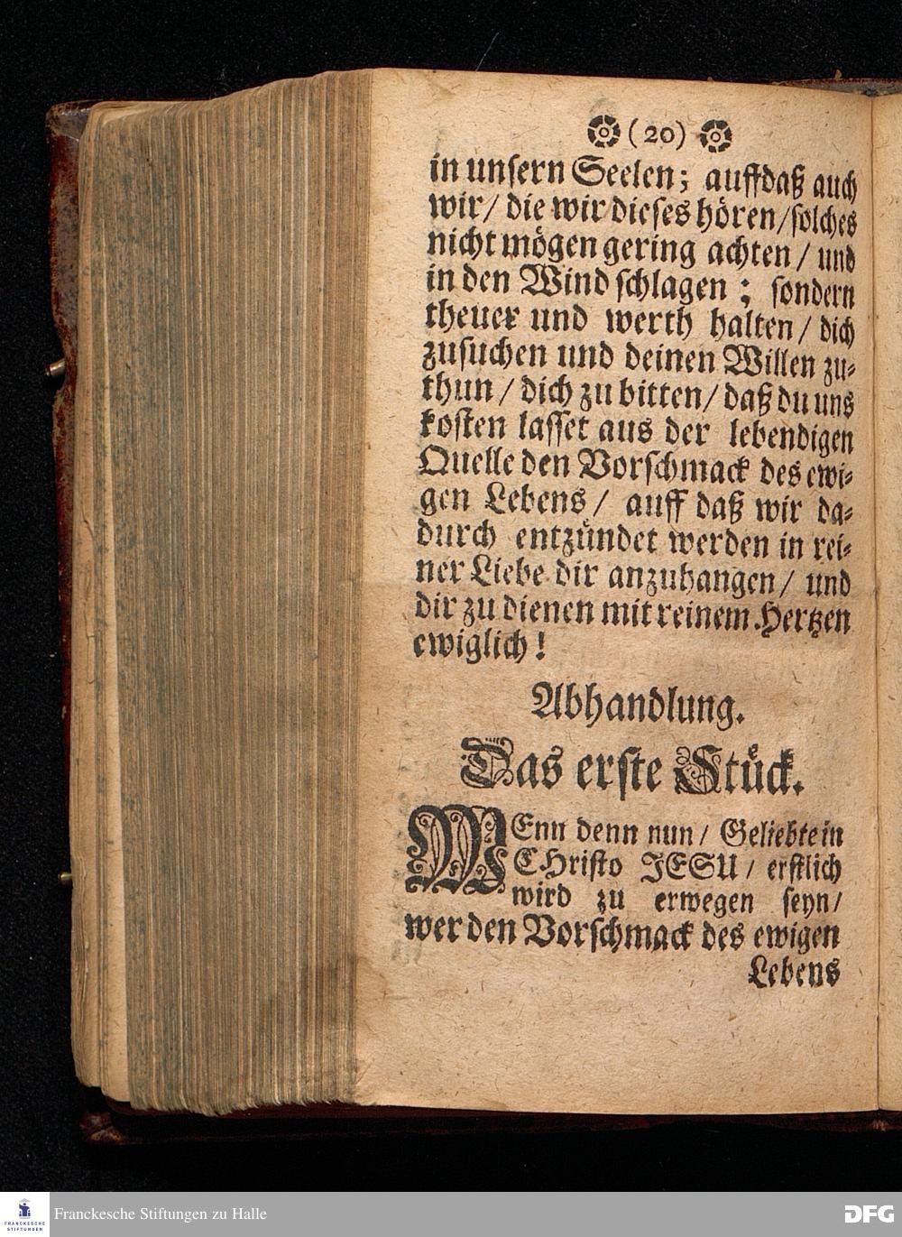 Der Vorschmack des ewigen Lebens / In einer Predigt Uber das Evangelium Matth.XVII, v.1==9. am 6.Sonntag nach Epiphan. Anno 1698. In der St.Georgen=Kirche zu Glaucha an Halle vorgestellet Und nunmehro zum andern mal herausgegeben / von M.August Hermann Francken / SS.Theol.Gr.& OO.LL.P.P.Ord.& P.Glauch. HALLE / Druckts Christian Henckel / 1699.