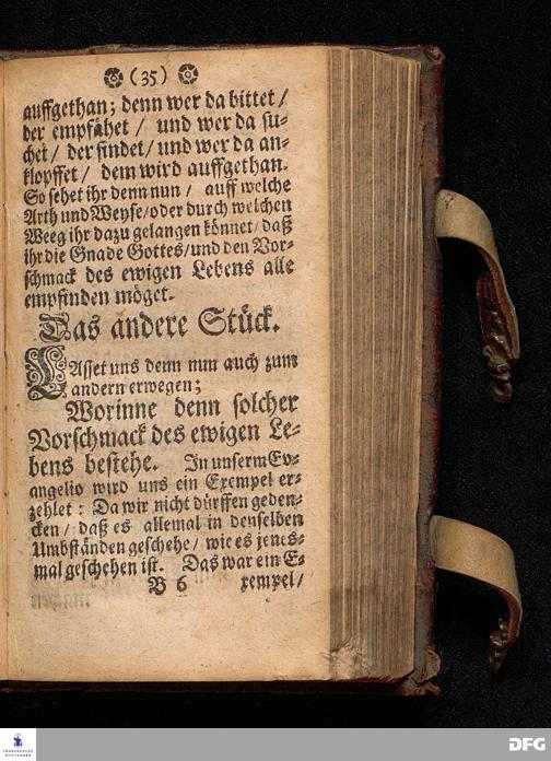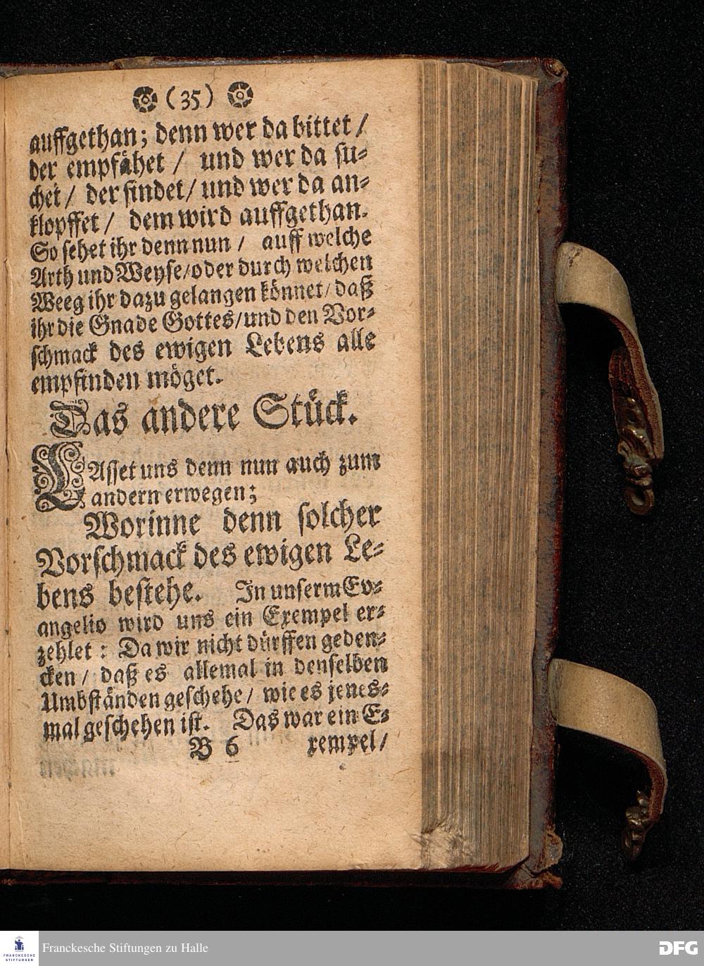 Der Vorschmack des ewigen Lebens / In einer Predigt Uber das Evangelium Matth.XVII, v.1==9. am 6.Sonntag nach Epiphan. Anno 1698. In der St.Georgen=Kirche zu Glaucha an Halle vorgestellet Und nunmehro zum andern mal herausgegeben / von M.August Hermann Francken / SS.Theol.Gr.& OO.LL.P.P.Ord.& P.Glauch. HALLE / Druckts Christian Henckel / 1699.