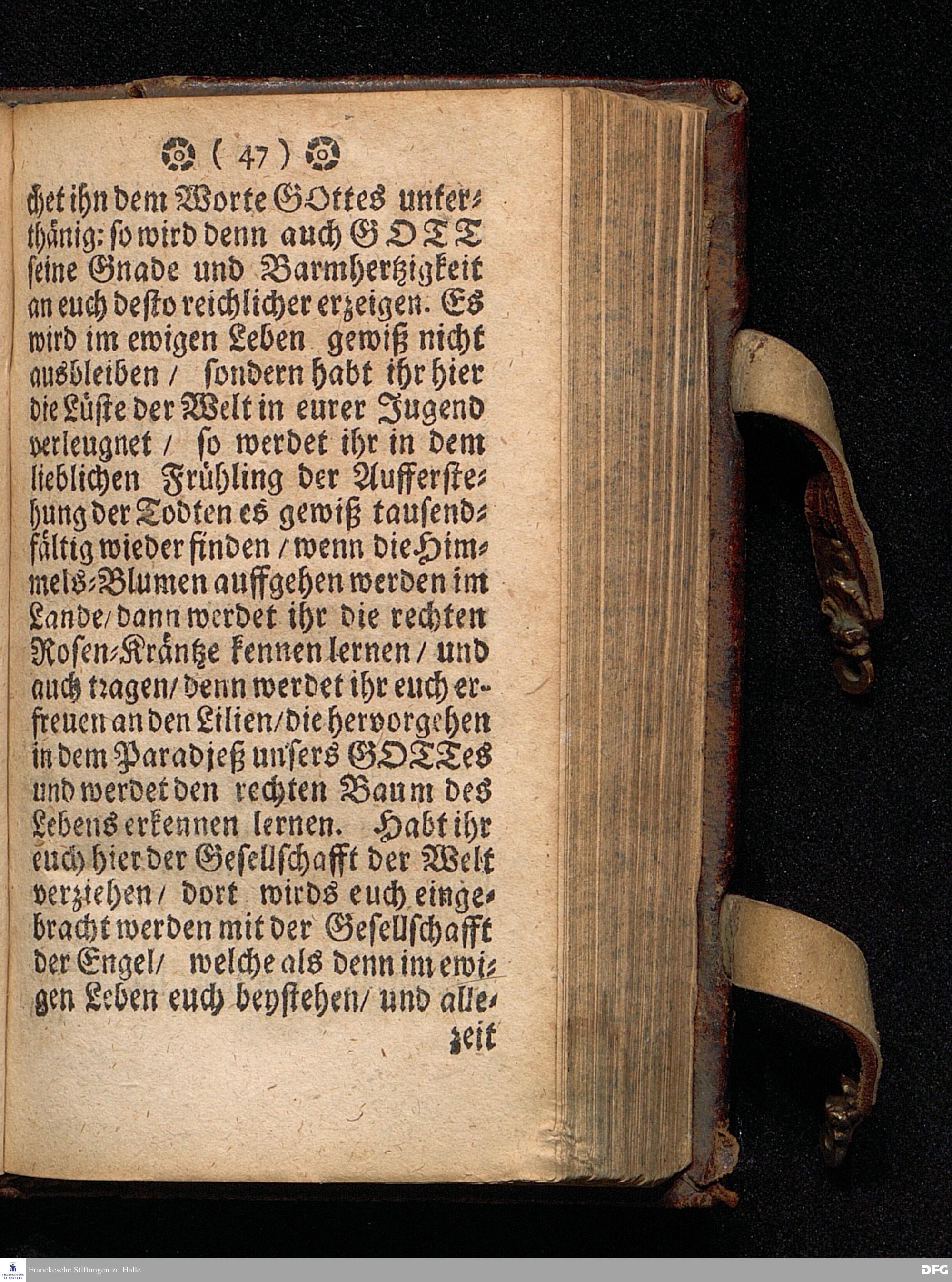 Der Beruff Gottes nach dem unterschiedlichen Alter der Menschen / Am Sonntag Septuagesima, In einer Predigt Uber das Evangelium Matth.XX.1==16. Anno 1696. In der St.Georgen Kirche zu Glaucha an Halle vorgestellet von M.August Hermann Francken / SS.Theol.P.Ord.& P.Glauch. HALLE / Gedruckt bey Christian Henckeln / Univers.Buchdr. 1700.