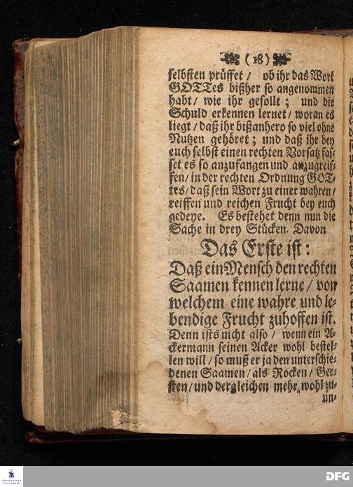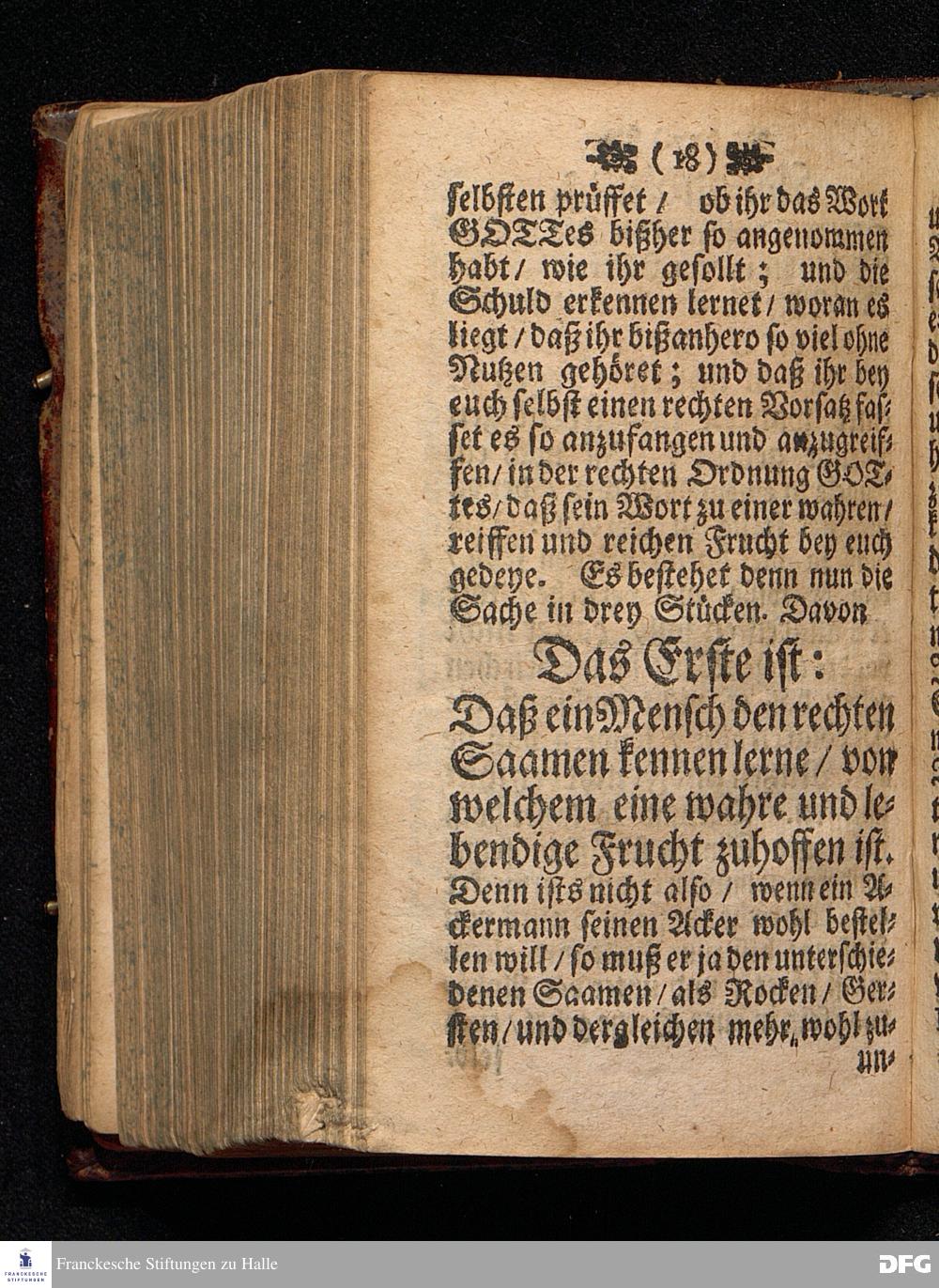 Der Rechte Gebrauch Des Worts GOttes / Oder Wie die Sache anzugreifen sey / daß der Saame des Worts GOttes zu einer wahren / reiffen und reichen Frucht komme? Am Sonntag Sexagesimæ ANNO 1698. In einer Predigt Uber das Evangelium Luc.IIX. v.4--16. In der St.Georgen=Kirche zu Glaucha an Halle vorgestellet / Und nun zum andernmal herausgegeben von M.August Hermann Francken / S.S.Theol.Gr.& OO.LL.P.P.Ord.& P.Glauch. Halle / Gedruckt bey Christian Henckeln / U.B. 1699.