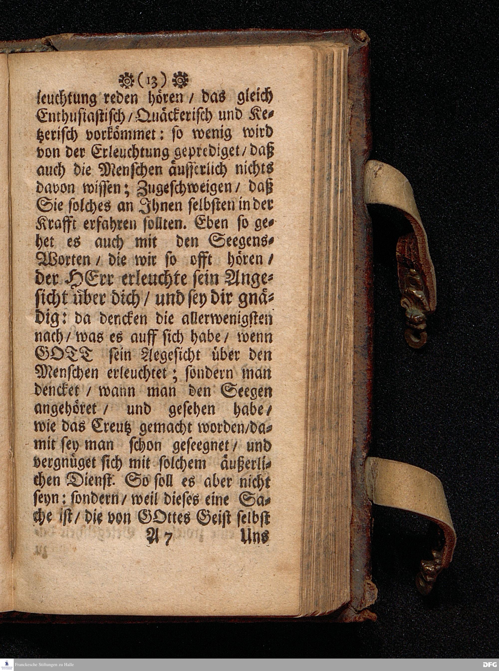 Die Lehre von der Erleuchtung / In einer Predigt Uber das Evangelium Luc.XVIII, v.31--43. Am Soñtag Quinquagesimæ Anno 1698. In der St.Georgen=Kirche zu Glaucha an Halle vorgestellet und nun zum andern mal herausgegeben von M.August Hermañ Francken. Druckts Christoph Andreas Zeitler, U.B.