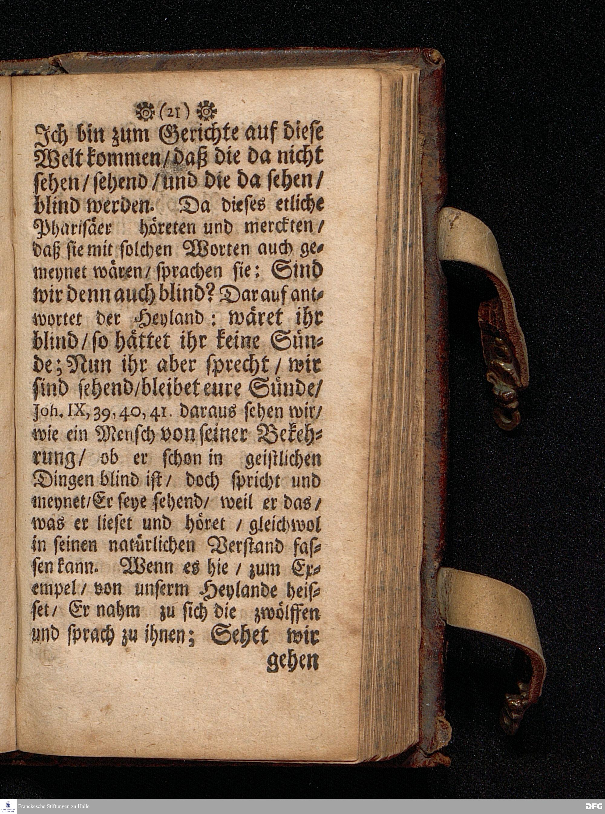 Die Lehre von der Erleuchtung / In einer Predigt Uber das Evangelium Luc.XVIII, v.31--43. Am Soñtag Quinquagesimæ Anno 1698. In der St.Georgen=Kirche zu Glaucha an Halle vorgestellet und nun zum andern mal herausgegeben von M.August Hermañ Francken. Druckts Christoph Andreas Zeitler, U.B.