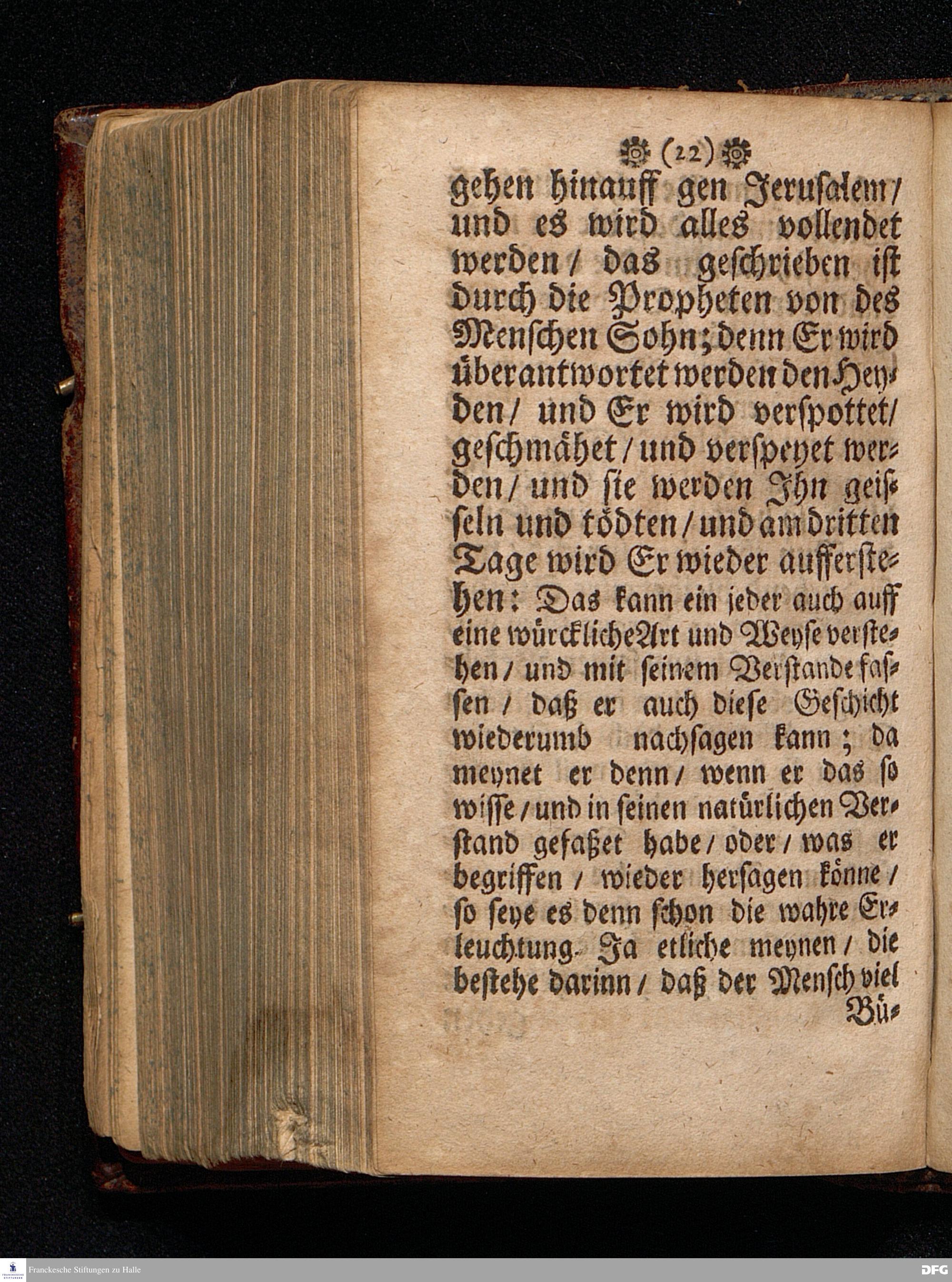Die Lehre von der Erleuchtung / In einer Predigt Uber das Evangelium Luc.XVIII, v.31--43. Am Soñtag Quinquagesimæ Anno 1698. In der St.Georgen=Kirche zu Glaucha an Halle vorgestellet und nun zum andern mal herausgegeben von M.August Hermañ Francken. Druckts Christoph Andreas Zeitler, U.B.