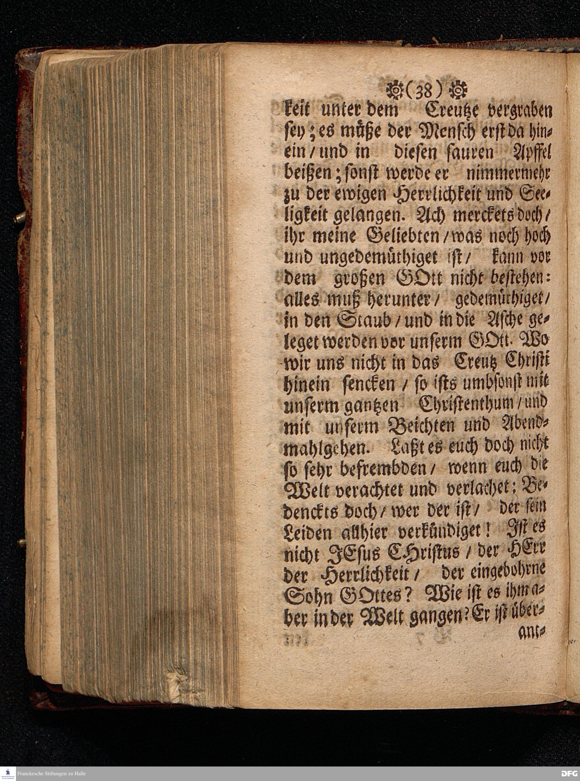 Die Lehre von der Erleuchtung / In einer Predigt Uber das Evangelium Luc.XVIII, v.31--43. Am Soñtag Quinquagesimæ Anno 1698. In der St.Georgen=Kirche zu Glaucha an Halle vorgestellet und nun zum andern mal herausgegeben von M.August Hermañ Francken. Druckts Christoph Andreas Zeitler, U.B.