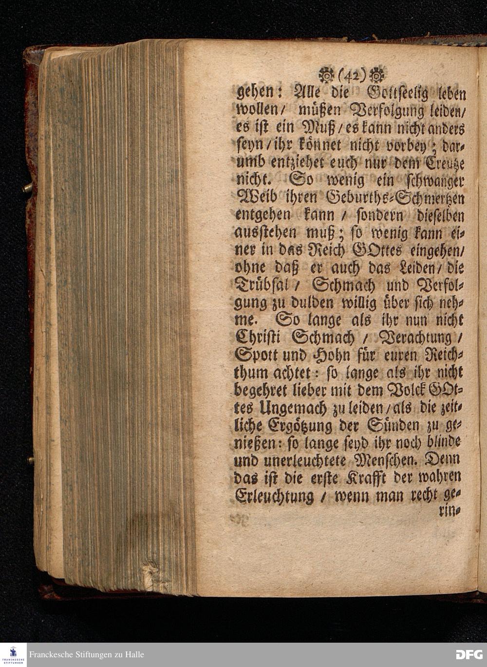 Die Lehre von der Erleuchtung / In einer Predigt Uber das Evangelium Luc.XVIII, v.31--43. Am Soñtag Quinquagesimæ Anno 1698. In der St.Georgen=Kirche zu Glaucha an Halle vorgestellet und nun zum andern mal herausgegeben von M.August Hermañ Francken. Druckts Christoph Andreas Zeitler, U.B.