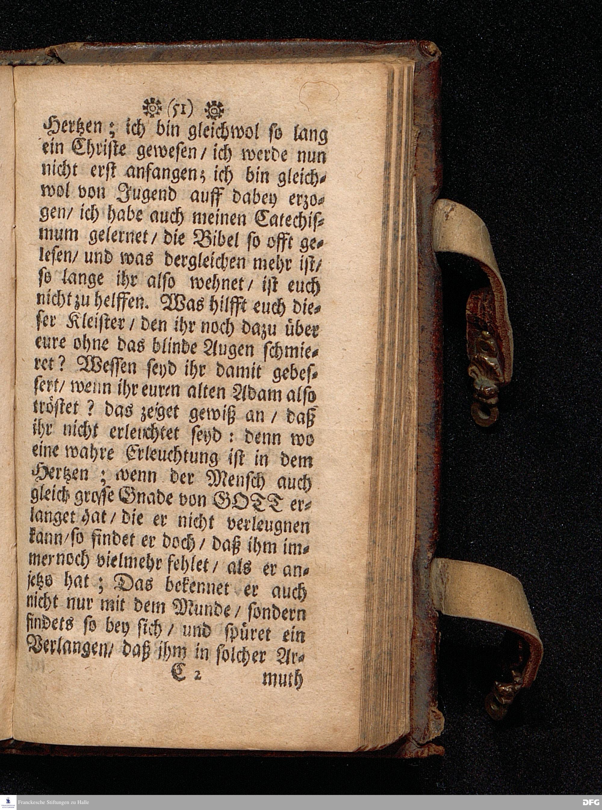 Die Lehre von der Erleuchtung / In einer Predigt Uber das Evangelium Luc.XVIII, v.31--43. Am Soñtag Quinquagesimæ Anno 1698. In der St.Georgen=Kirche zu Glaucha an Halle vorgestellet und nun zum andern mal herausgegeben von M.August Hermañ Francken. Druckts Christoph Andreas Zeitler, U.B.