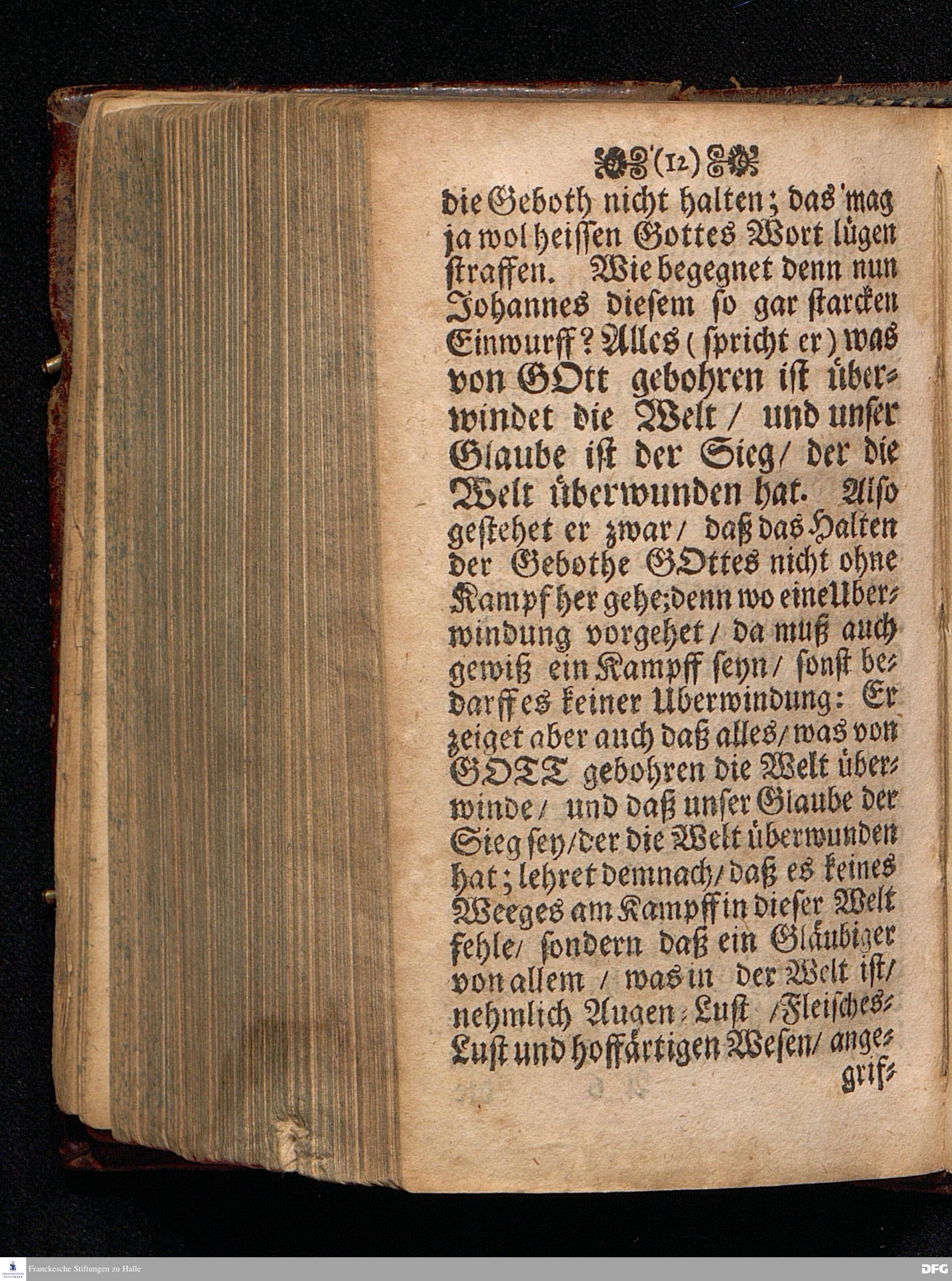 Der Kampff wider die Sünde / Am Sonntag Invocavit Anno 1699. In einer Predigt Uber das Evangelium Matth.IV, 1--11. In der St.Georgen=Kirche zu Glaucha an Halle vorgestellet / Und nunmehr zum andernmal herausgegeben / von M.August Hermann Francken / SS.Theol.P.Ord.& P.Glauch. HALLE / Gedruckt bey Christian Henckeln / Univers.Buchdr.1699.