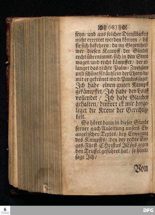 Der Kampff wider die Sünde / Am Sonntag Invocavit Anno 1699. In einer Predigt Uber das Evangelium Matth.IV, 1--11. In der St.Georgen=Kirche zu Glaucha an Halle vorgestellet / Und nunmehr zum andernmal herausgegeben / von M.August Hermann Francken / SS.Theol.P.Ord.& P.Glauch. HALLE / Gedruckt bey Christian Henckeln / Univers.Buchdr.1699.