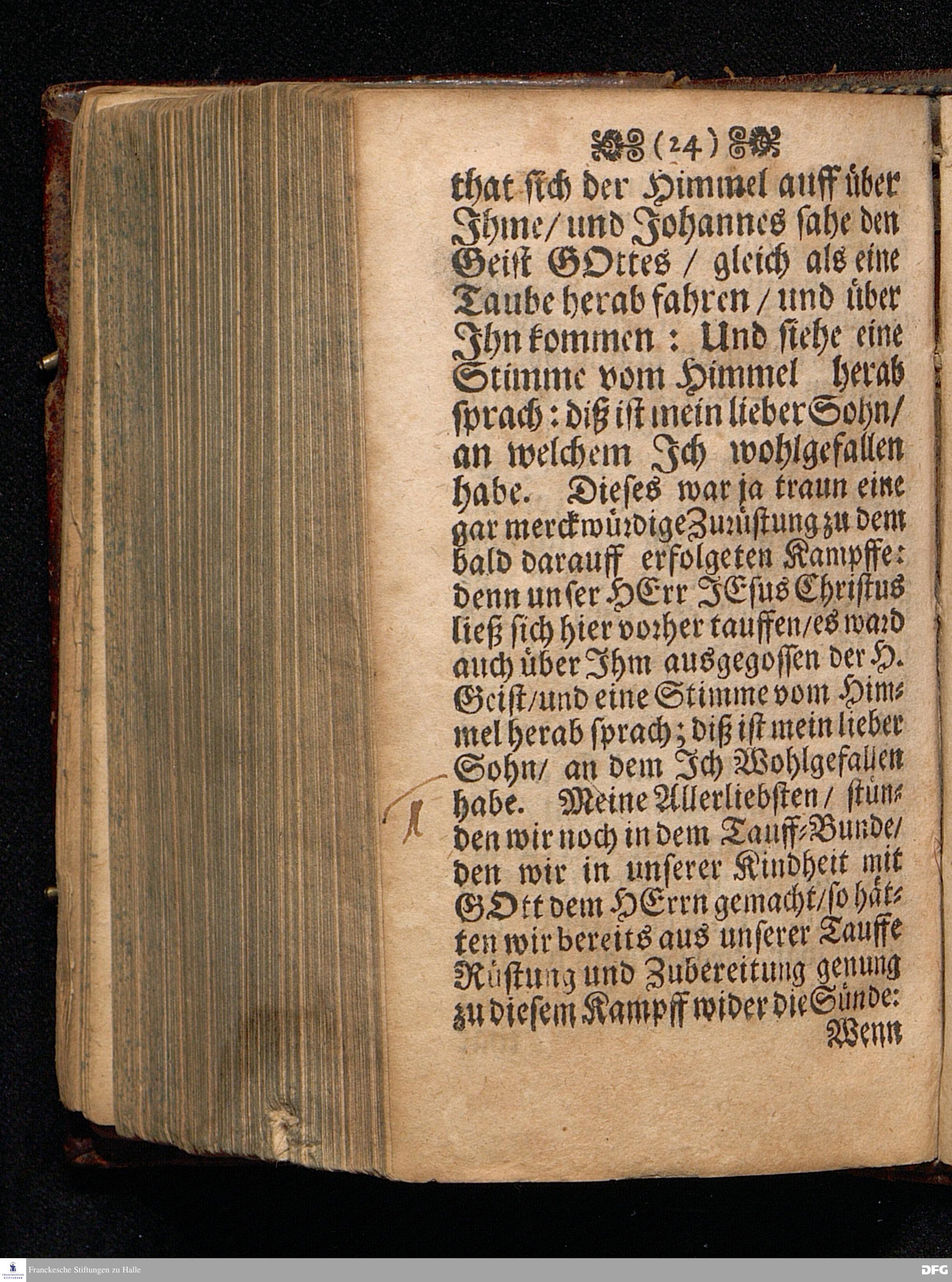 Der Kampff wider die Sünde / Am Sonntag Invocavit Anno 1699. In einer Predigt Uber das Evangelium Matth.IV, 1--11. In der St.Georgen=Kirche zu Glaucha an Halle vorgestellet / Und nunmehr zum andernmal herausgegeben / von M.August Hermann Francken / SS.Theol.P.Ord.& P.Glauch. HALLE / Gedruckt bey Christian Henckeln / Univers.Buchdr.1699.