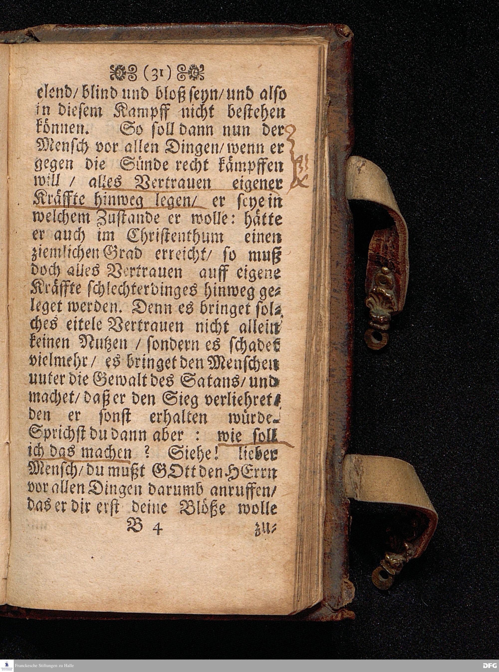 Der Kampff wider die Sünde / Am Sonntag Invocavit Anno 1699. In einer Predigt Uber das Evangelium Matth.IV, 1--11. In der St.Georgen=Kirche zu Glaucha an Halle vorgestellet / Und nunmehr zum andernmal herausgegeben / von M.August Hermann Francken / SS.Theol.P.Ord.& P.Glauch. HALLE / Gedruckt bey Christian Henckeln / Univers.Buchdr.1699.