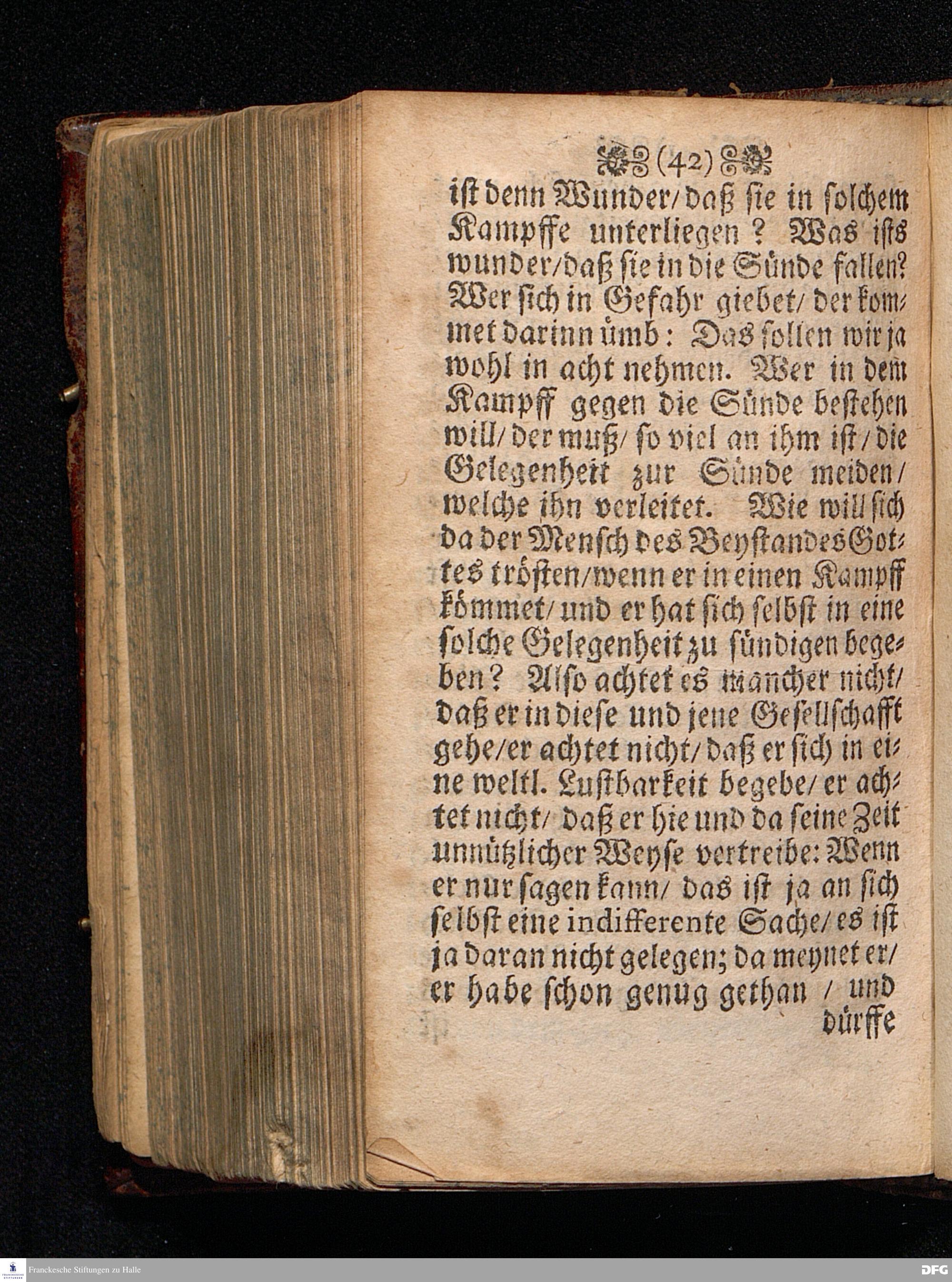 Der Kampff wider die Sünde / Am Sonntag Invocavit Anno 1699. In einer Predigt Uber das Evangelium Matth.IV, 1--11. In der St.Georgen=Kirche zu Glaucha an Halle vorgestellet / Und nunmehr zum andernmal herausgegeben / von M.August Hermann Francken / SS.Theol.P.Ord.& P.Glauch. HALLE / Gedruckt bey Christian Henckeln / Univers.Buchdr.1699.