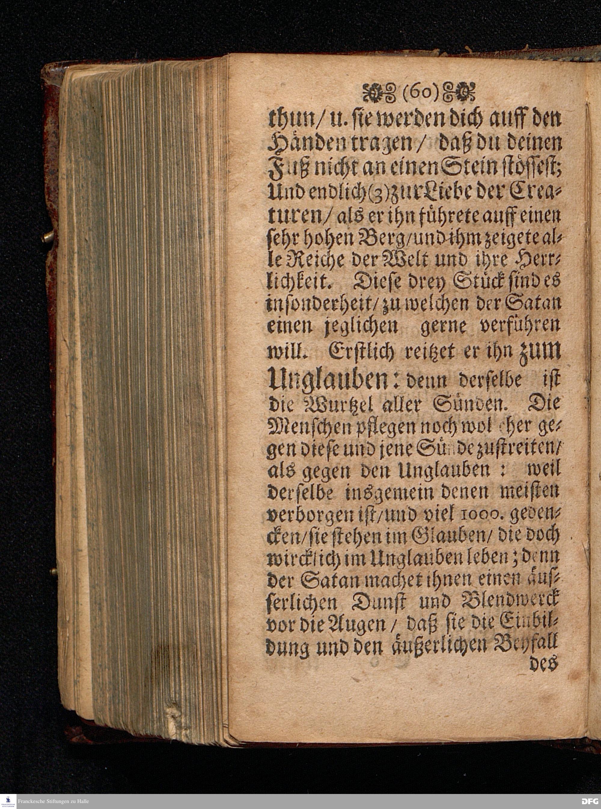 Der Kampff wider die Sünde / Am Sonntag Invocavit Anno 1699. In einer Predigt Uber das Evangelium Matth.IV, 1--11. In der St.Georgen=Kirche zu Glaucha an Halle vorgestellet / Und nunmehr zum andernmal herausgegeben / von M.August Hermann Francken / SS.Theol.P.Ord.& P.Glauch. HALLE / Gedruckt bey Christian Henckeln / Univers.Buchdr.1699.