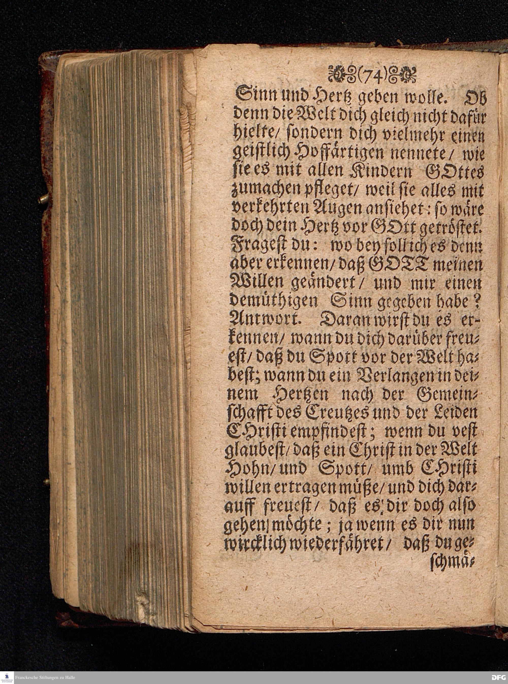 Der Kampff wider die Sünde / Am Sonntag Invocavit Anno 1699. In einer Predigt Uber das Evangelium Matth.IV, 1--11. In der St.Georgen=Kirche zu Glaucha an Halle vorgestellet / Und nunmehr zum andernmal herausgegeben / von M.August Hermann Francken / SS.Theol.P.Ord.& P.Glauch. HALLE / Gedruckt bey Christian Henckeln / Univers.Buchdr.1699.