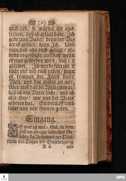 Die Wohnung GOttes bey den Menschen Am I.H.Pfingst=Tage Anno 1698 in einer Predigt Uber das Evangelium Joh.XIV. 23-31. In der St.Georgen Kirche zu Glaucha an Halle vorgestellet von August Hermann Francken S.S.Theol.P.Ord.& P.Glauch. HALLE / Druckts Christian Henckel / Univ.Buchdr. 1701.