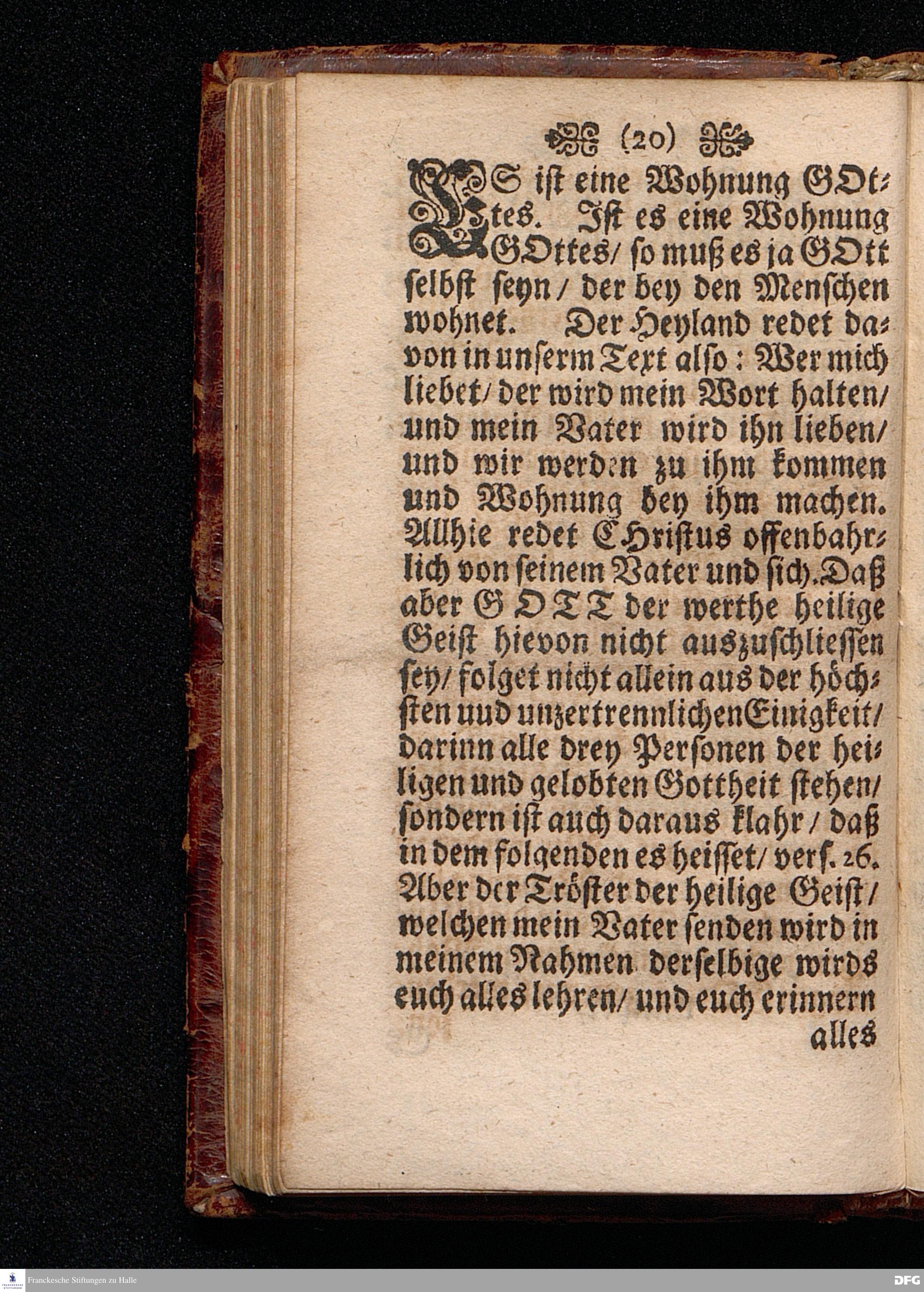 Die Wohnung GOttes bey den Menschen Am I.H.Pfingst=Tage Anno 1698 in einer Predigt Uber das Evangelium Joh.XIV. 23-31. In der St.Georgen Kirche zu Glaucha an Halle vorgestellet von August Hermann Francken S.S.Theol.P.Ord.& P.Glauch. HALLE / Druckts Christian Henckel / Univ.Buchdr. 1701.