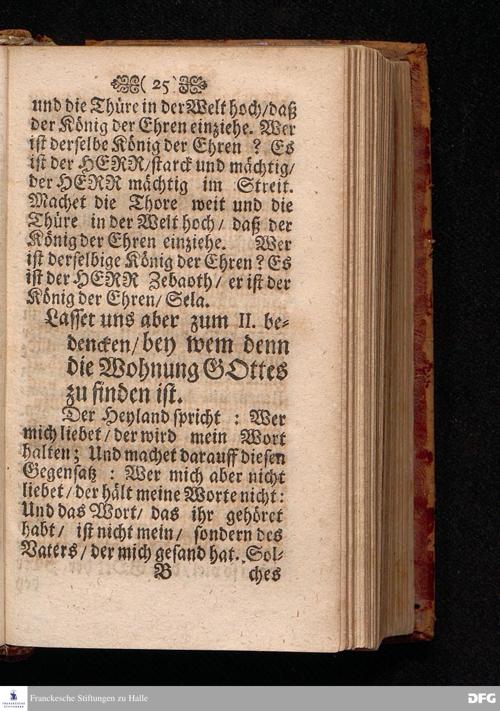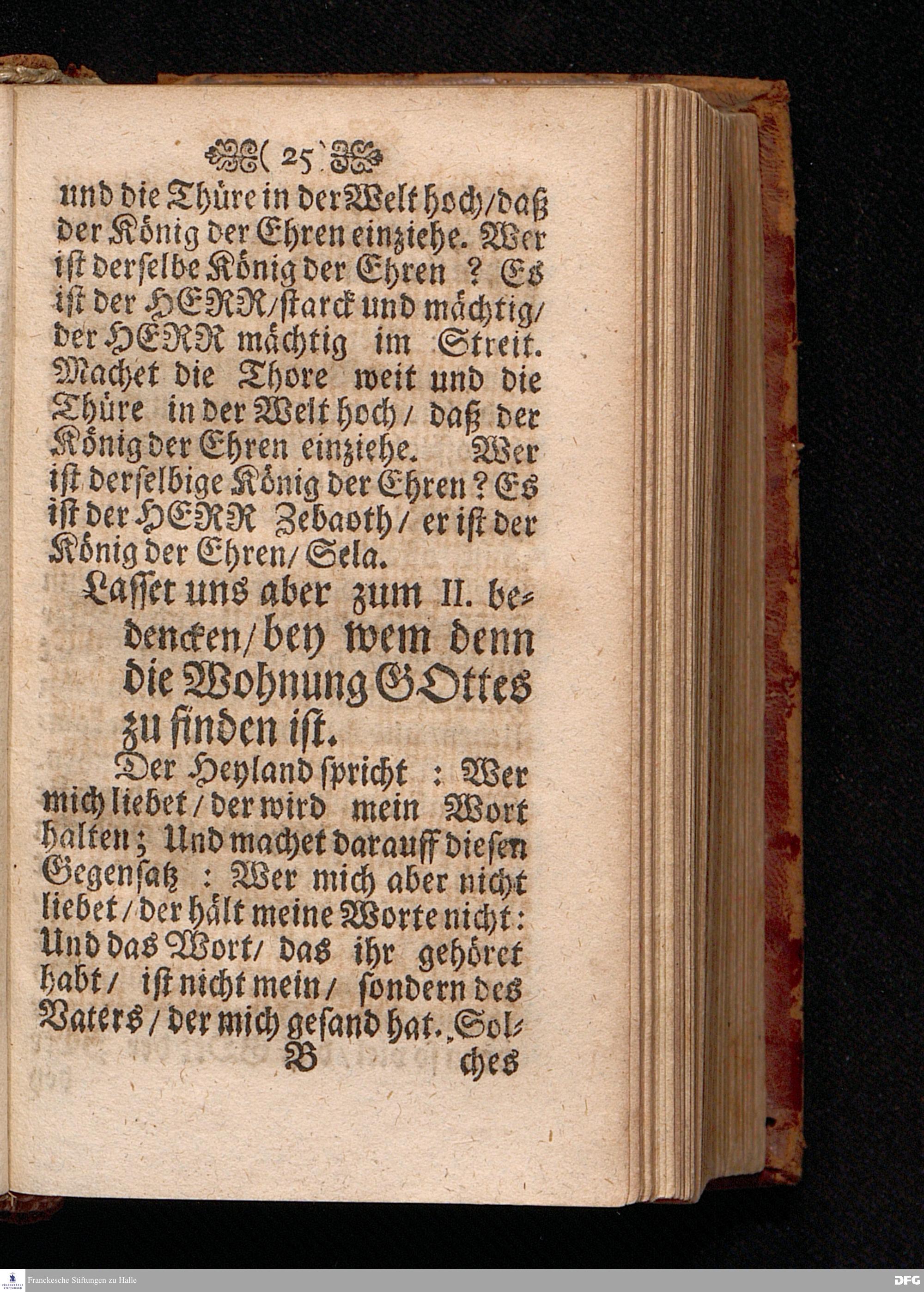 Die Wohnung GOttes bey den Menschen Am I.H.Pfingst=Tage Anno 1698 in einer Predigt Uber das Evangelium Joh.XIV. 23-31. In der St.Georgen Kirche zu Glaucha an Halle vorgestellet von August Hermann Francken S.S.Theol.P.Ord.& P.Glauch. HALLE / Druckts Christian Henckel / Univ.Buchdr. 1701.