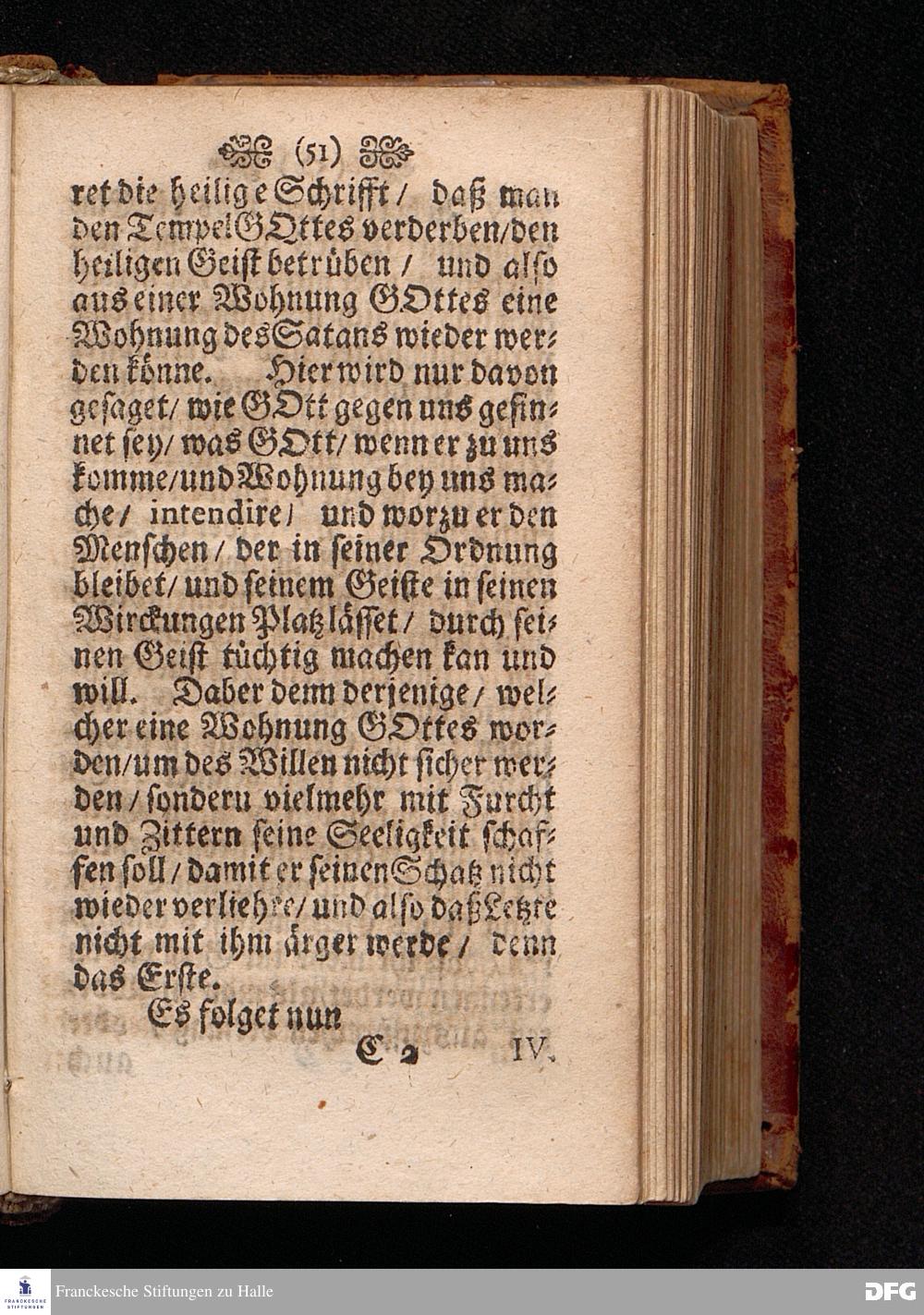 Die Wohnung GOttes bey den Menschen Am I.H.Pfingst=Tage Anno 1698 in einer Predigt Uber das Evangelium Joh.XIV. 23-31. In der St.Georgen Kirche zu Glaucha an Halle vorgestellet von August Hermann Francken S.S.Theol.P.Ord.& P.Glauch. HALLE / Druckts Christian Henckel / Univ.Buchdr. 1701.