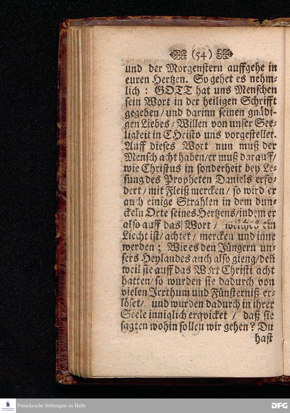 Die Wohnung GOttes bey den Menschen Am I.H.Pfingst=Tage Anno 1698 in einer Predigt Uber das Evangelium Joh.XIV. 23-31. In der St.Georgen Kirche zu Glaucha an Halle vorgestellet von August Hermann Francken S.S.Theol.P.Ord.& P.Glauch. HALLE / Druckts Christian Henckel / Univ.Buchdr. 1701.