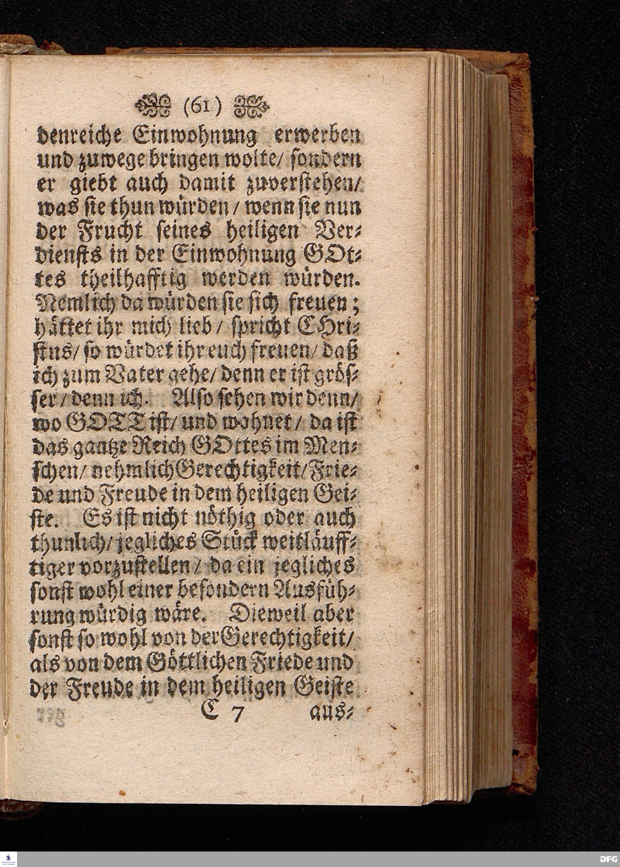 Die Wohnung GOttes bey den Menschen Am I.H.Pfingst=Tage Anno 1698 in einer Predigt Uber das Evangelium Joh.XIV. 23-31. In der St.Georgen Kirche zu Glaucha an Halle vorgestellet von August Hermann Francken S.S.Theol.P.Ord.& P.Glauch. HALLE / Druckts Christian Henckel / Univ.Buchdr. 1701.