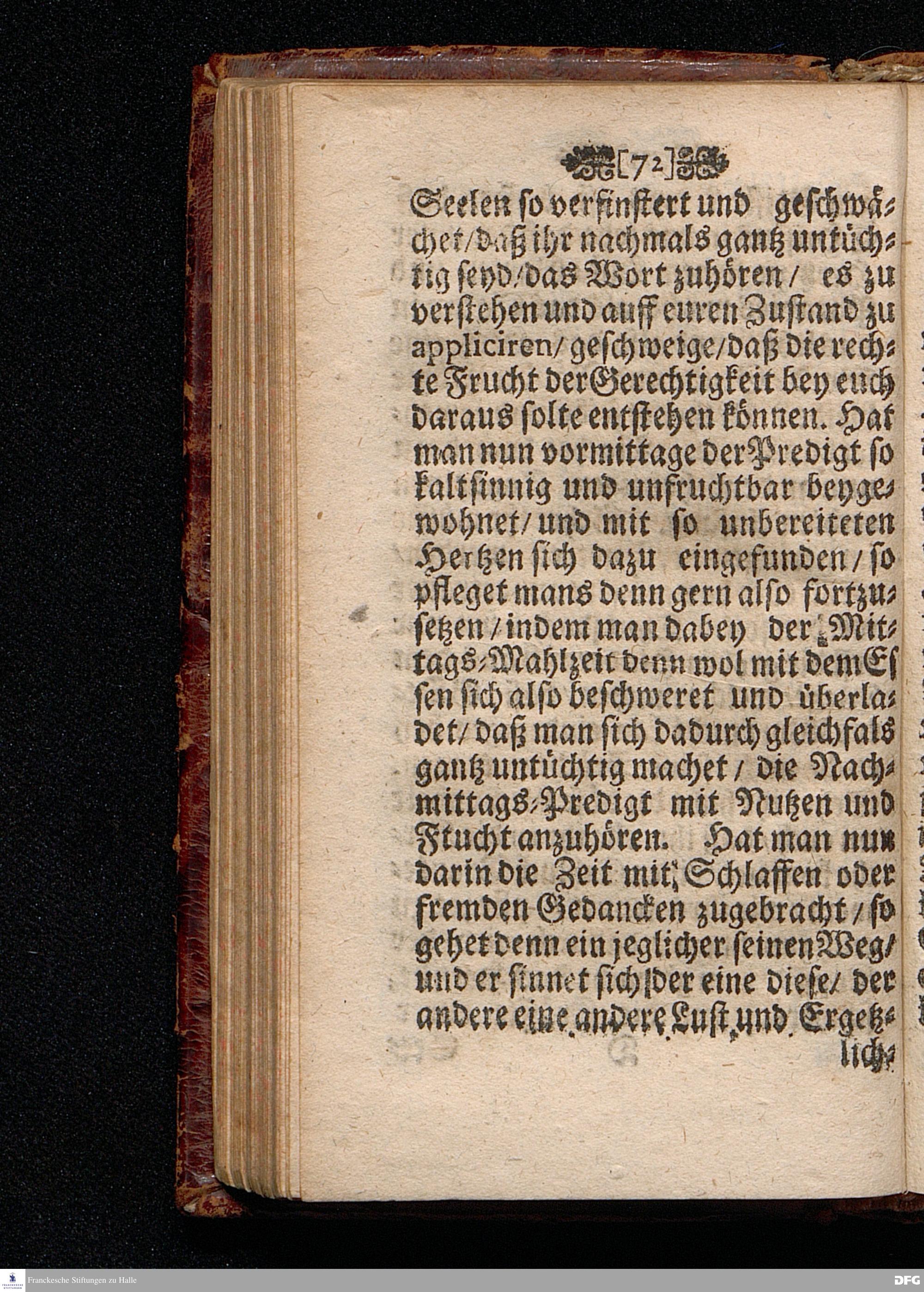 Die Wohnung GOttes bey den Menschen Am I.H.Pfingst=Tage Anno 1698 in einer Predigt Uber das Evangelium Joh.XIV. 23-31. In der St.Georgen Kirche zu Glaucha an Halle vorgestellet von August Hermann Francken S.S.Theol.P.Ord.& P.Glauch. HALLE / Druckts Christian Henckel / Univ.Buchdr. 1701.