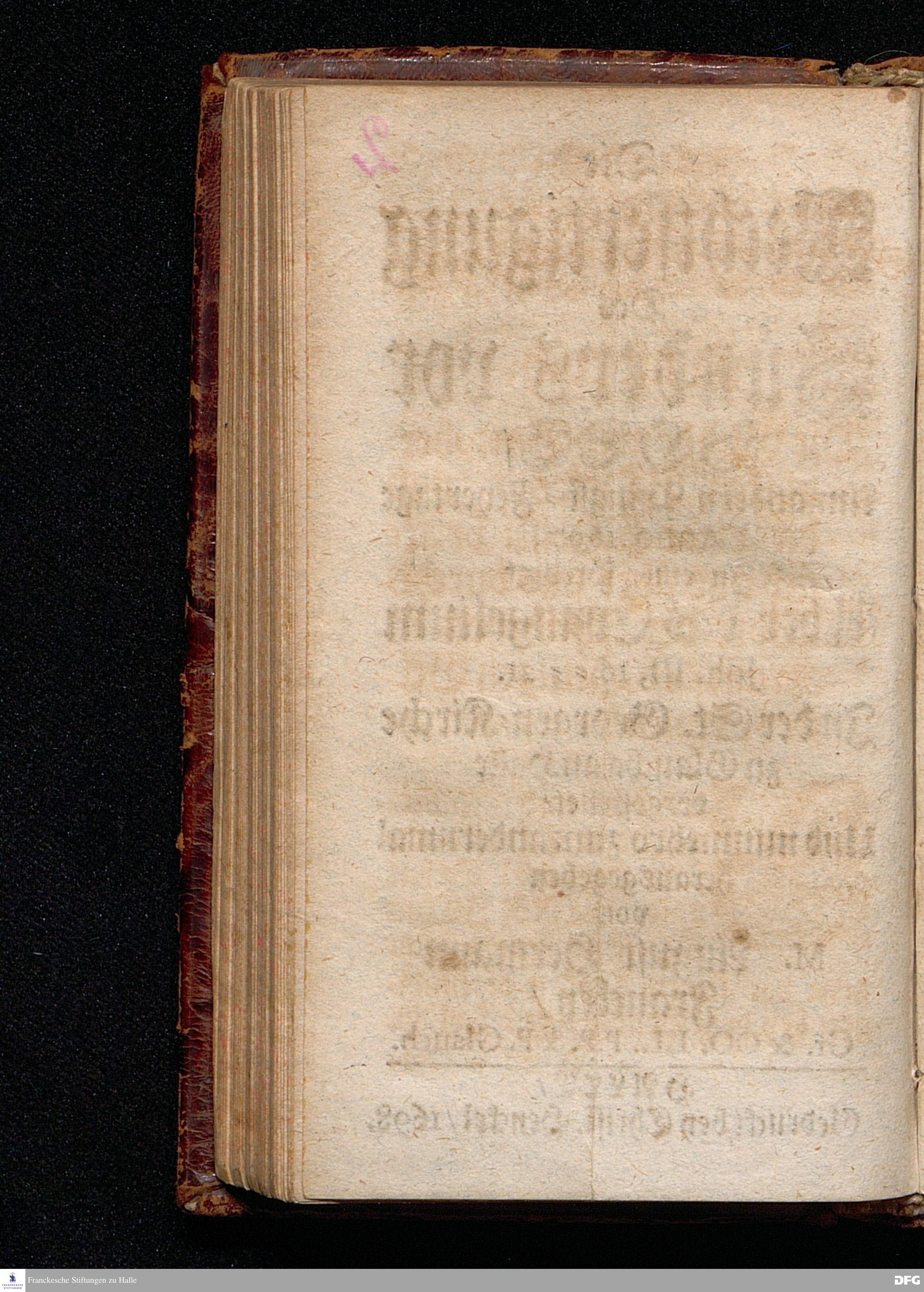 Die Rechtfertigung Des Sünders vor GOTT / Am andern Pfingst=Feyertage Anno 1697, In einer Predigt Uber das Evangelium Joh.III, 16==21. In der St.Georgen=Kirche zu Glaucha an Halle vorgestellet / Und nunmehro zum andernmal herausgegeben von M.August Hermann Francken / Gr.& OO.LL.P.P.& P.Glauch. HALLE / Gedruckt bey Christ.Henckel / 1698.