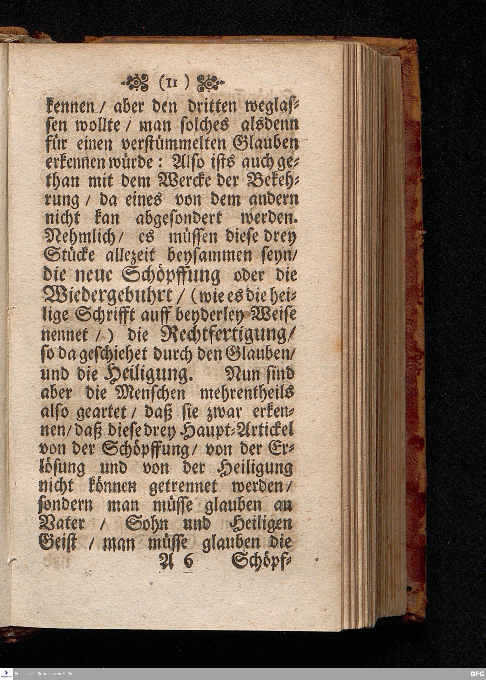 Die Rechtfertigung Des Sünders vor GOTT / Am andern Pfingst=Feyertage Anno 1697, In einer Predigt Uber das Evangelium Joh.III, 16==21. In der St.Georgen=Kirche zu Glaucha an Halle vorgestellet / Und nunmehro zum andernmal herausgegeben von M.August Hermann Francken / Gr.& OO.LL.P.P.& P.Glauch. HALLE / Gedruckt bey Christ.Henckel / 1698.