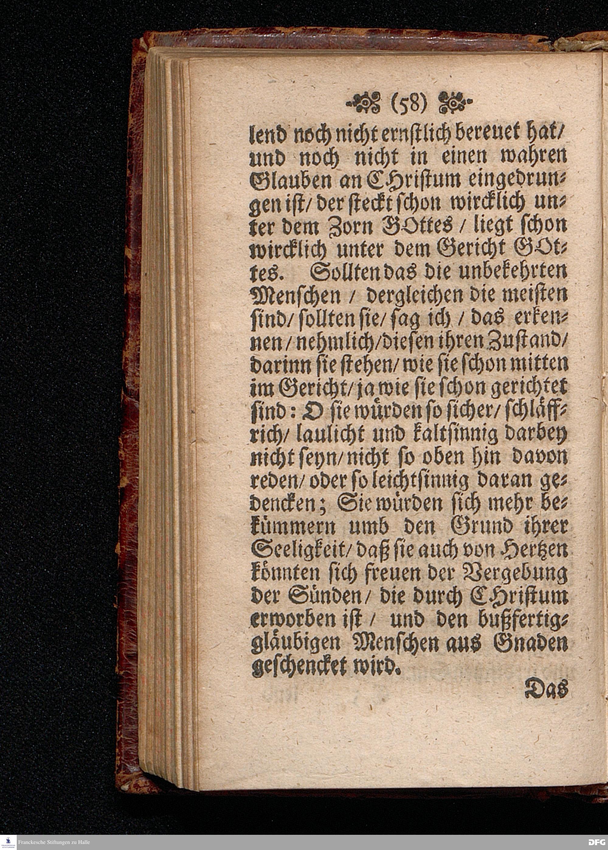Die Rechtfertigung Des Sünders vor GOTT / Am andern Pfingst=Feyertage Anno 1697, In einer Predigt Uber das Evangelium Joh.III, 16==21. In der St.Georgen=Kirche zu Glaucha an Halle vorgestellet / Und nunmehro zum andernmal herausgegeben von M.August Hermann Francken / Gr.& OO.LL.P.P.& P.Glauch. HALLE / Gedruckt bey Christ.Henckel / 1698.