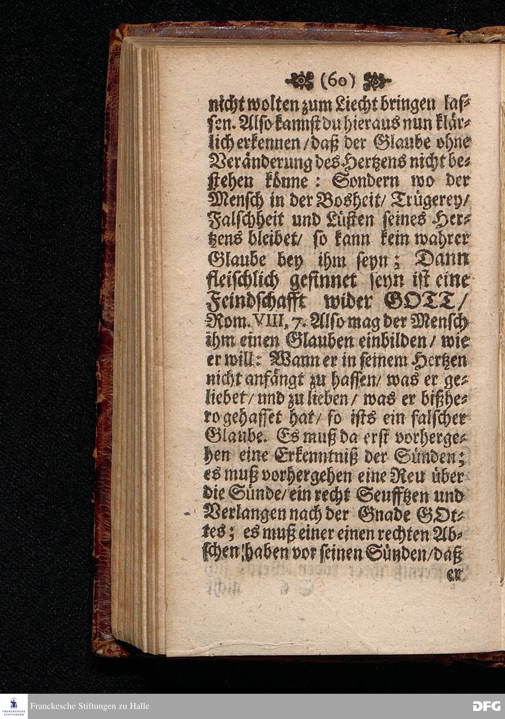 Die Rechtfertigung Des Sünders vor GOTT / Am andern Pfingst=Feyertage Anno 1697, In einer Predigt Uber das Evangelium Joh.III, 16==21. In der St.Georgen=Kirche zu Glaucha an Halle vorgestellet / Und nunmehro zum andernmal herausgegeben von M.August Hermann Francken / Gr.& OO.LL.P.P.& P.Glauch. HALLE / Gedruckt bey Christ.Henckel / 1698.