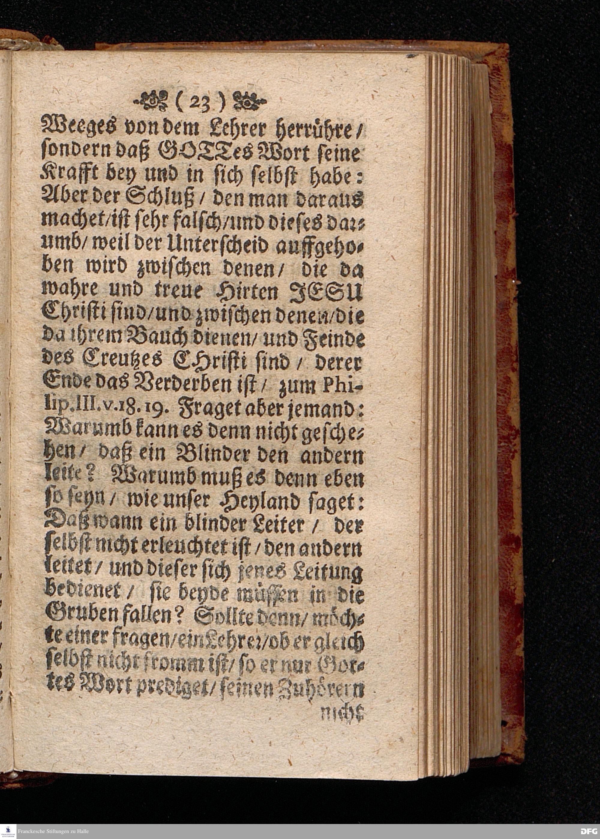Predigt Von dem Dienst Untreuer Lehrer / Uber das Evangelium Joh.X, 1--11. Am Pfingst=Dienstage ANNO 1698. In der St.Georgen=Kirche zu Glaucha an Halle gehalten / Und nun zum andernmal herausgegeben von M.August Hermann Francken / SS.Theol.Gr.& OO.LL.P.P.Ord.& P.Glauch. HALLE / Druckts Christian Henckel / 1699.