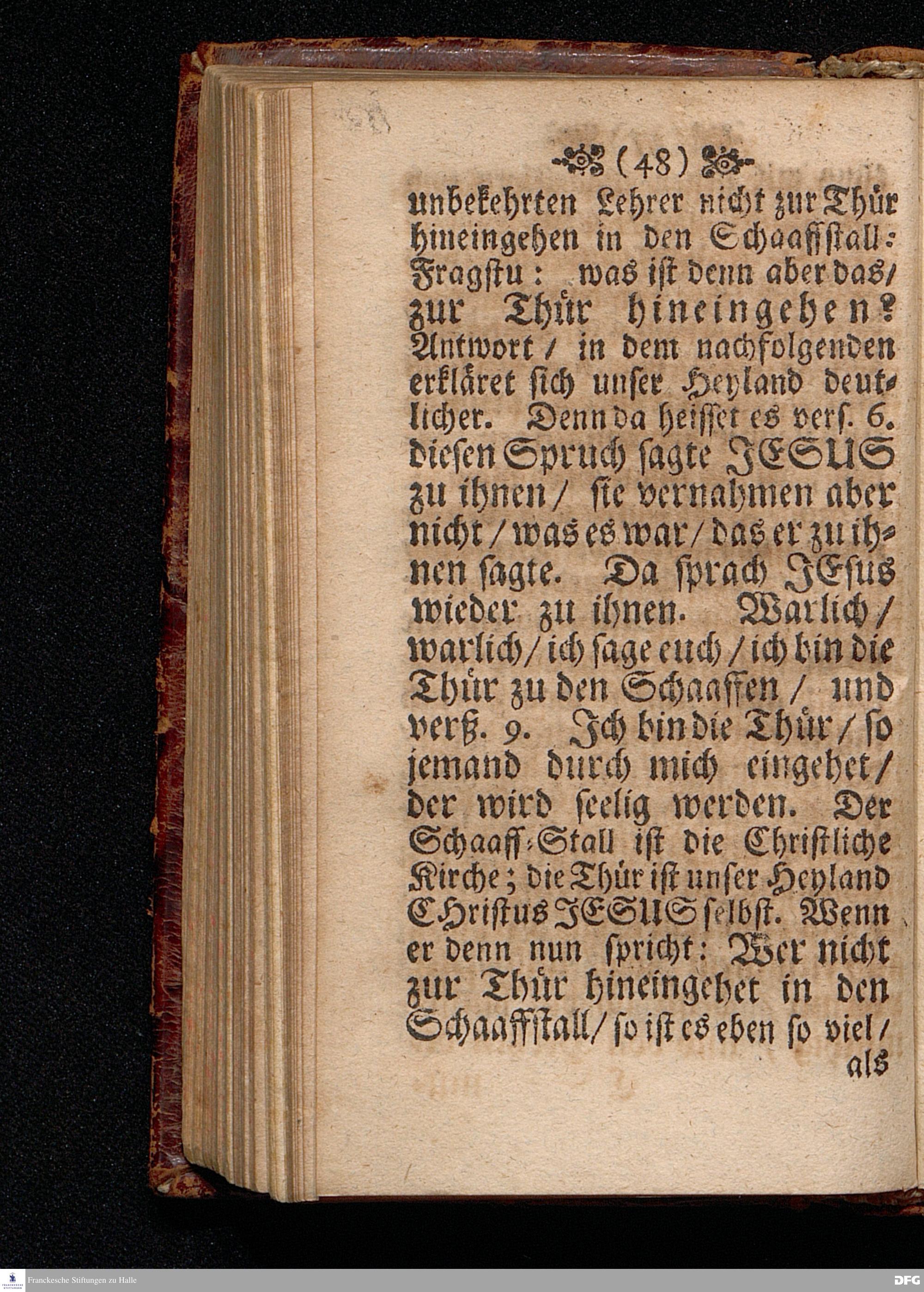Predigt Von dem Dienst Untreuer Lehrer / Uber das Evangelium Joh.X, 1--11. Am Pfingst=Dienstage ANNO 1698. In der St.Georgen=Kirche zu Glaucha an Halle gehalten / Und nun zum andernmal herausgegeben von M.August Hermann Francken / SS.Theol.Gr.& OO.LL.P.P.Ord.& P.Glauch. HALLE / Druckts Christian Henckel / 1699.