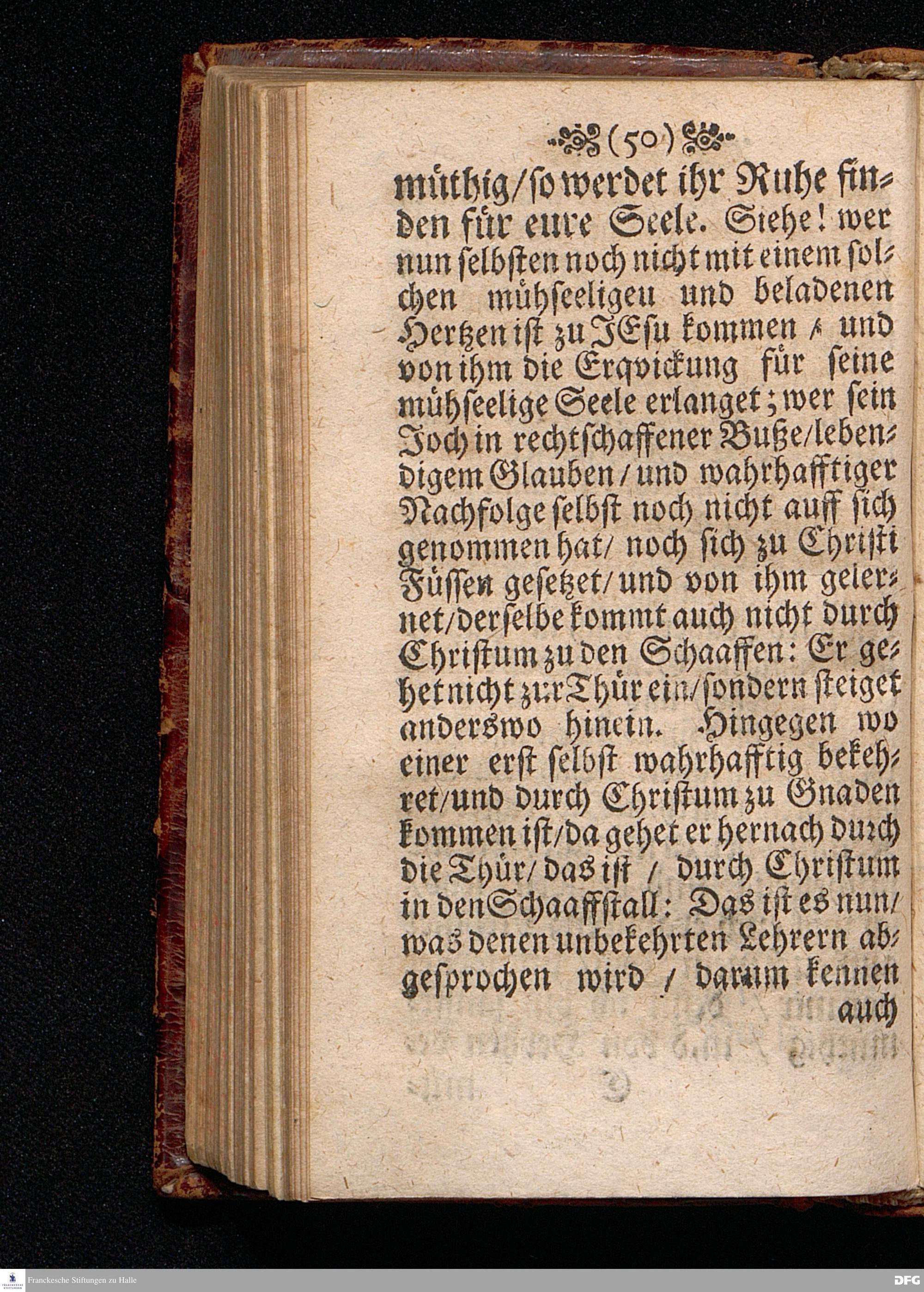 Predigt Von dem Dienst Untreuer Lehrer / Uber das Evangelium Joh.X, 1--11. Am Pfingst=Dienstage ANNO 1698. In der St.Georgen=Kirche zu Glaucha an Halle gehalten / Und nun zum andernmal herausgegeben von M.August Hermann Francken / SS.Theol.Gr.& OO.LL.P.P.Ord.& P.Glauch. HALLE / Druckts Christian Henckel / 1699.