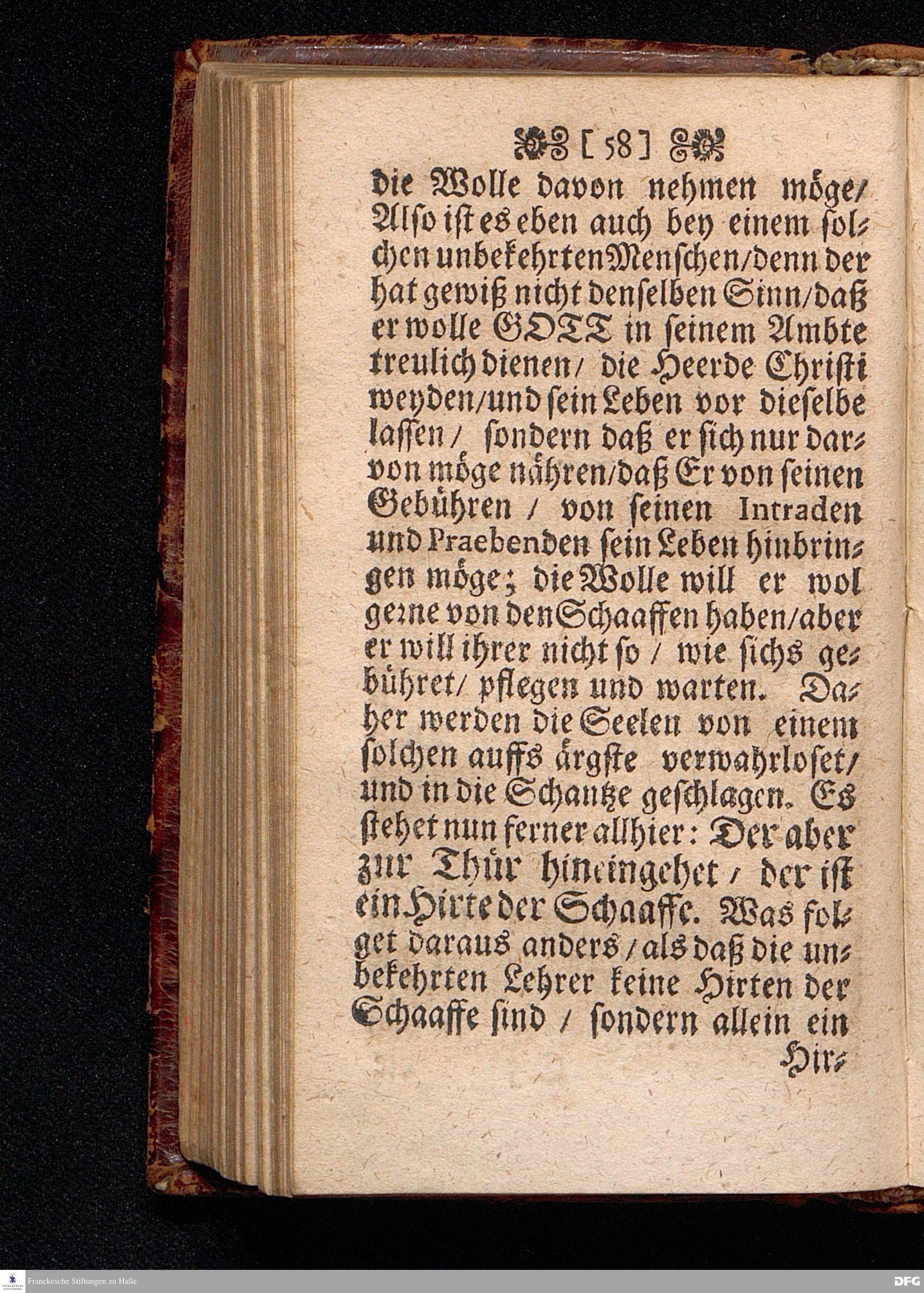 Predigt Von dem Dienst Untreuer Lehrer / Uber das Evangelium Joh.X, 1--11. Am Pfingst=Dienstage ANNO 1698. In der St.Georgen=Kirche zu Glaucha an Halle gehalten / Und nun zum andernmal herausgegeben von M.August Hermann Francken / SS.Theol.Gr.& OO.LL.P.P.Ord.& P.Glauch. HALLE / Druckts Christian Henckel / 1699.